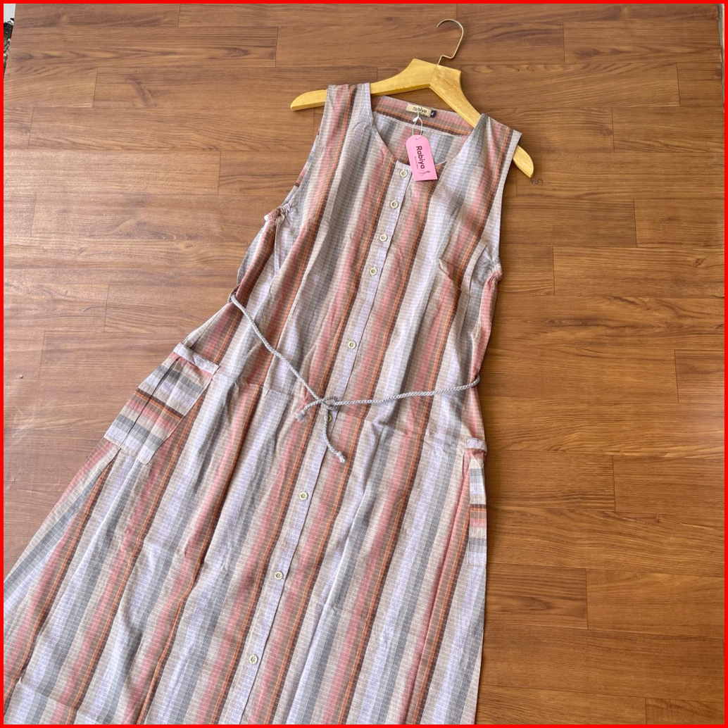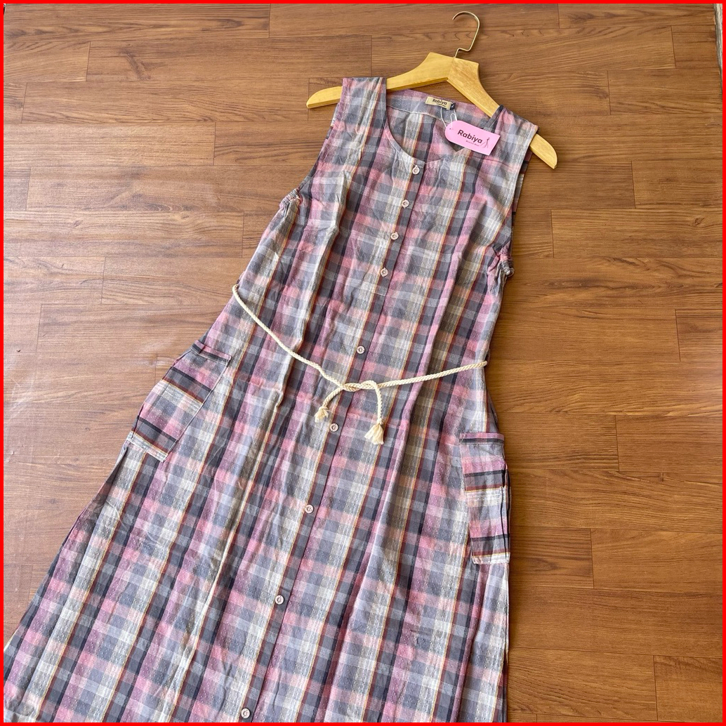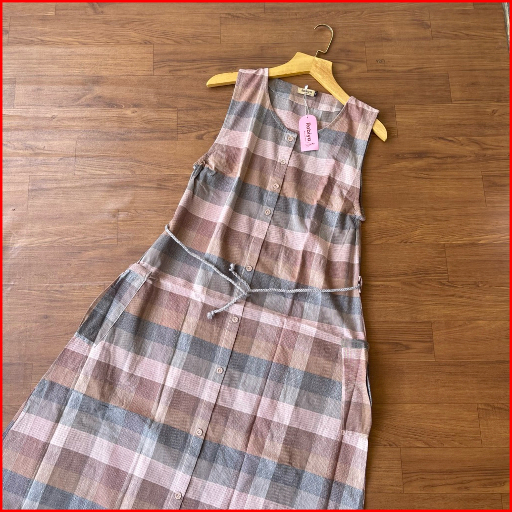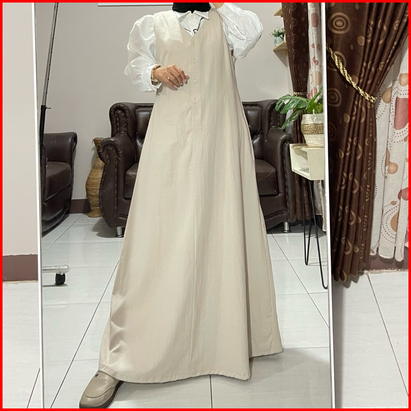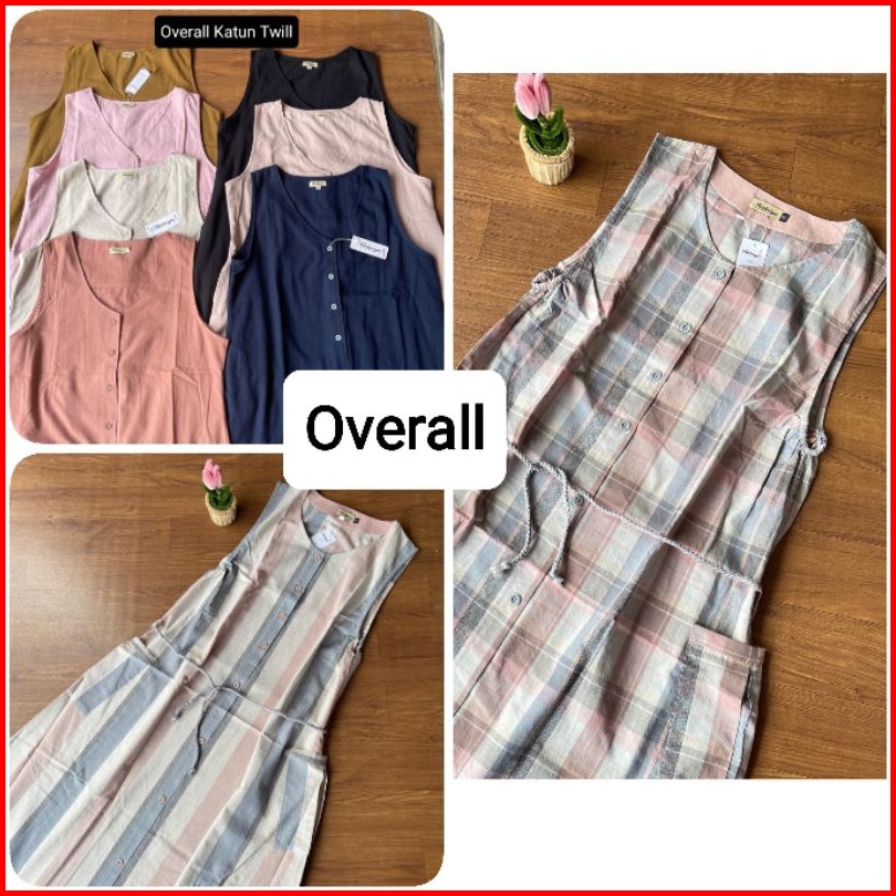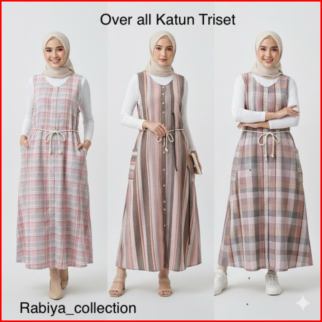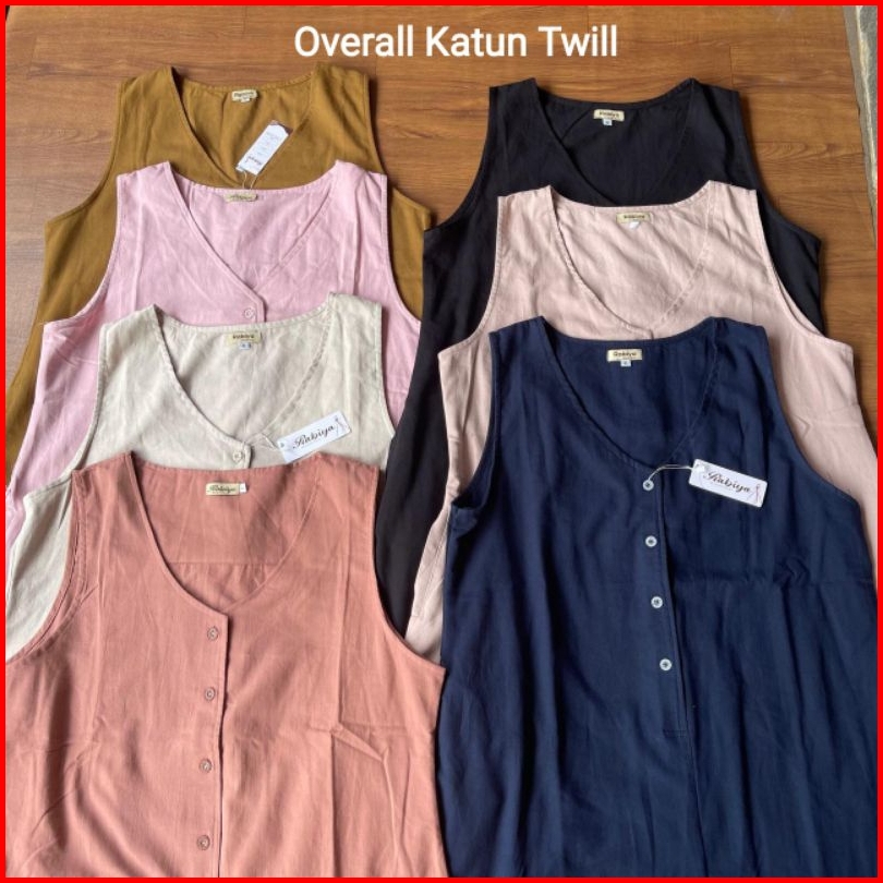 Overall Dewasa Katun Triset Dress Panjang Tanpa Lengan Jumpsuit By Rabiya Collection