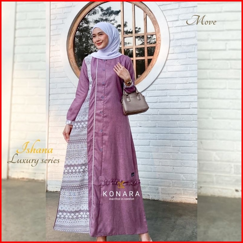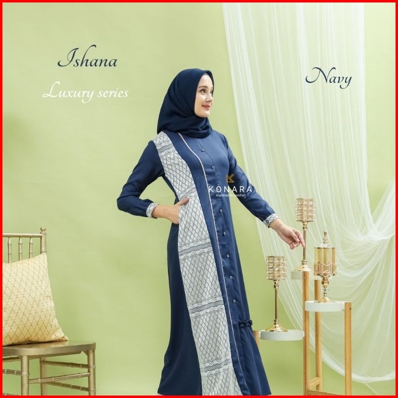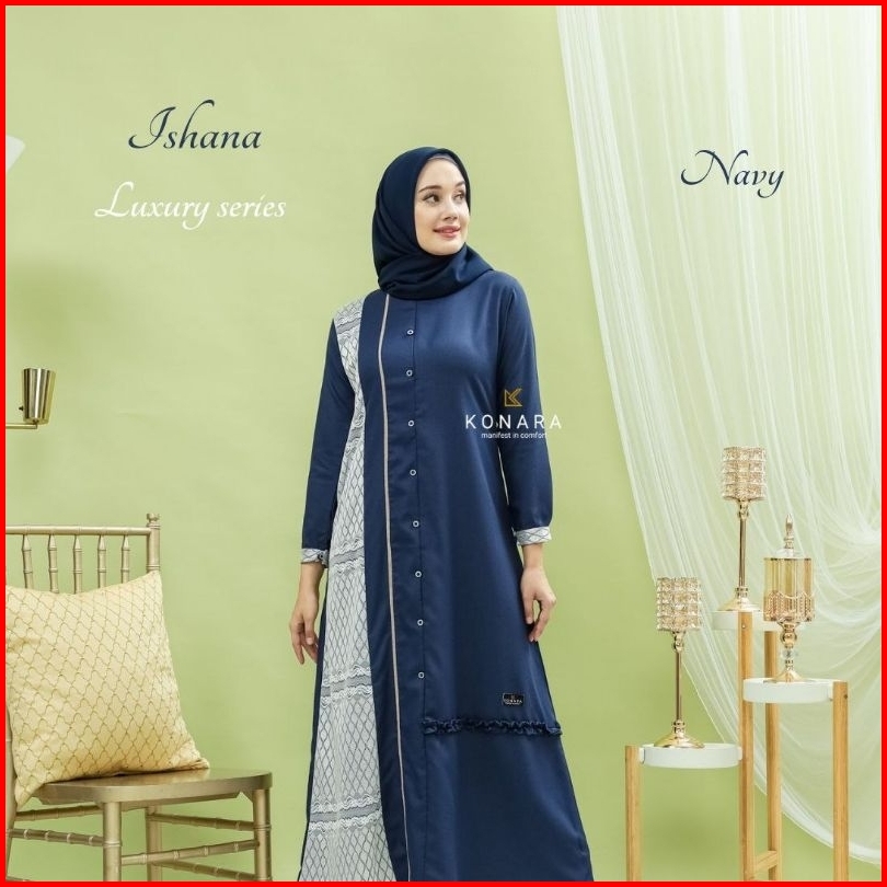 Baju Gamis Muslim Wanita Modern Ishana Luxury Series Katun Madinah Premium Busui Terbaru Original By Konara