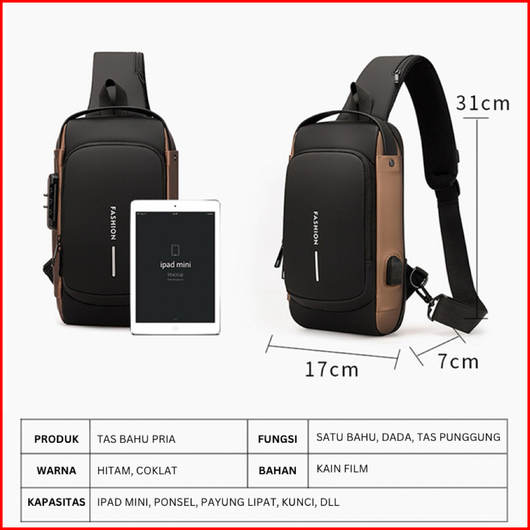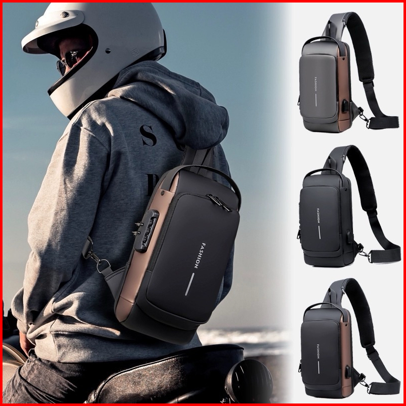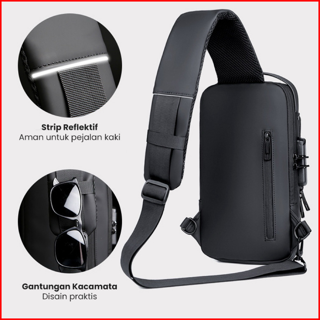 Alacrity X314 Tas Selempang Pria Anti Maling Multifungsi Usb Port Shoulder Bag Anti Air