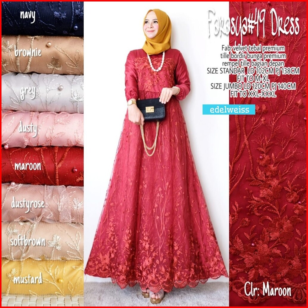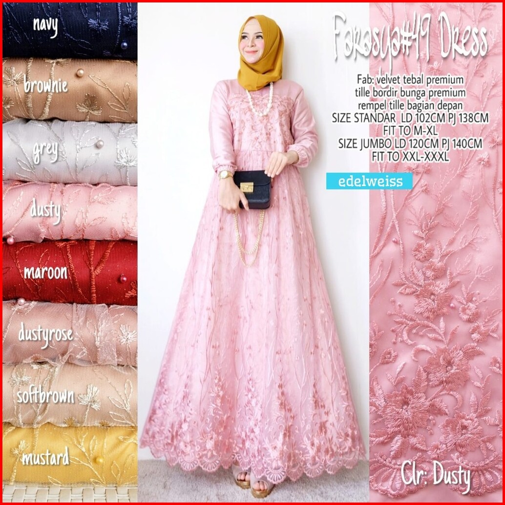 Farasya 49 Dress Tille Mewah Ada Jumbo - Gamis Pesta Kondangan Termurah Best Seller