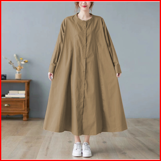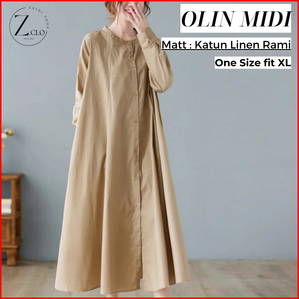 Olin Midi Dress Wanita Korean Style Bahan Katun Linen Rami Hijab Style Muslimah Remaja Dewasa Terbaru Viral 2023