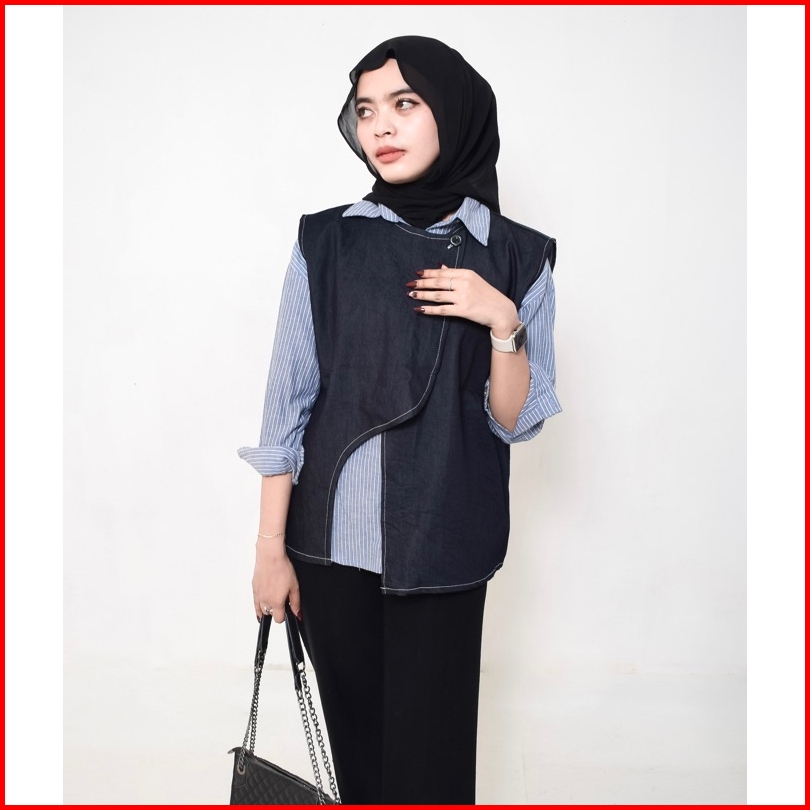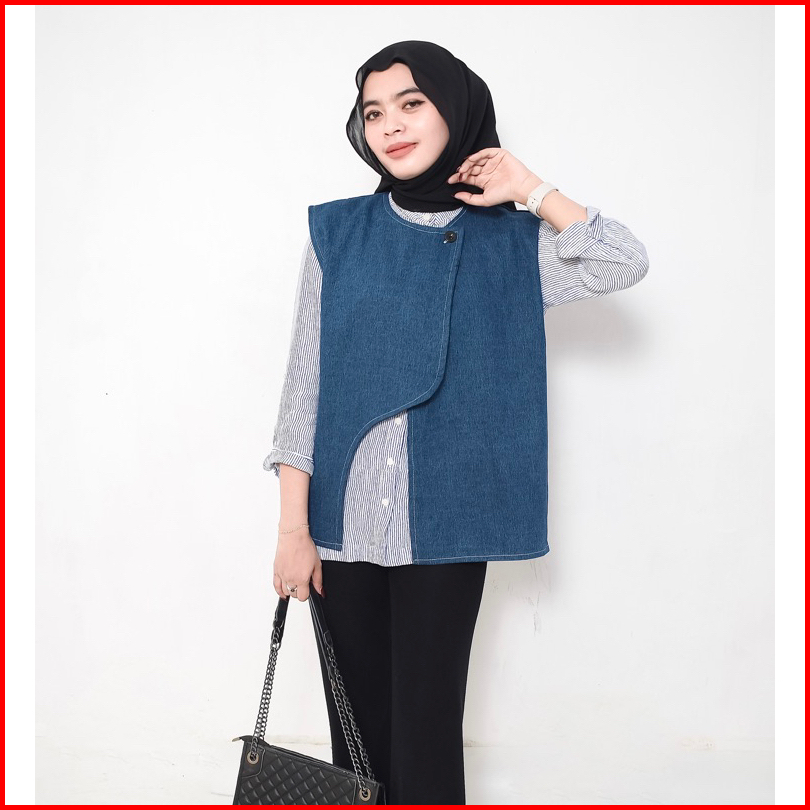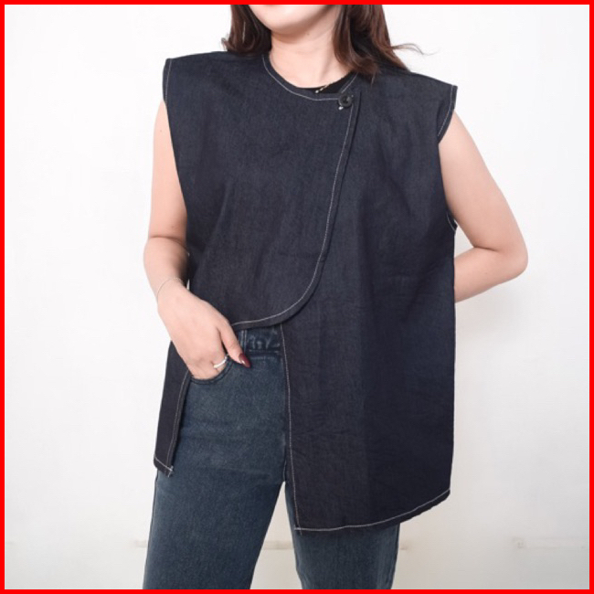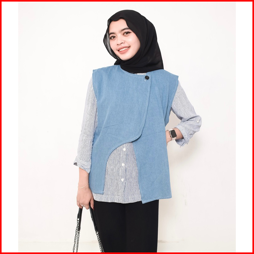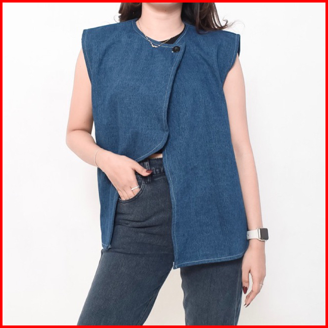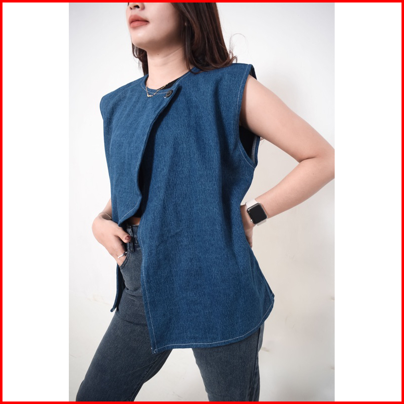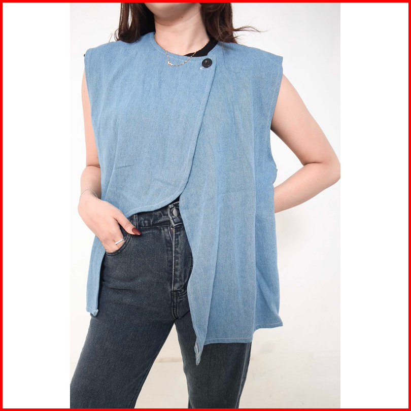 Zora Vest Vest Outer Rompi Wanita Vest Denim Wanita Rompi Kancing Samping Wanita