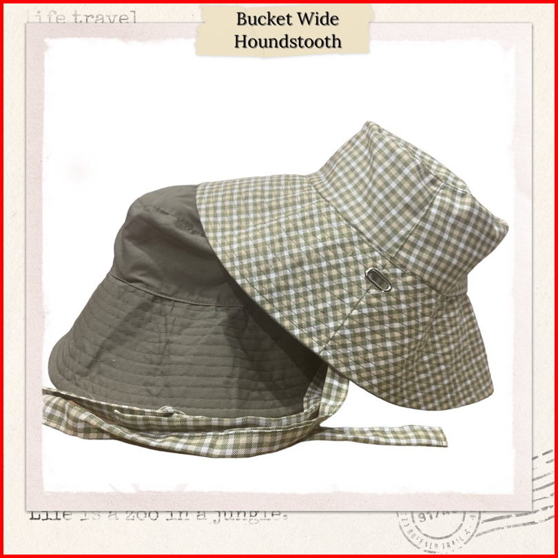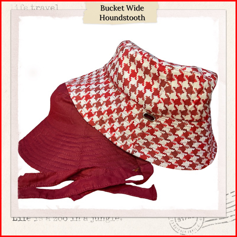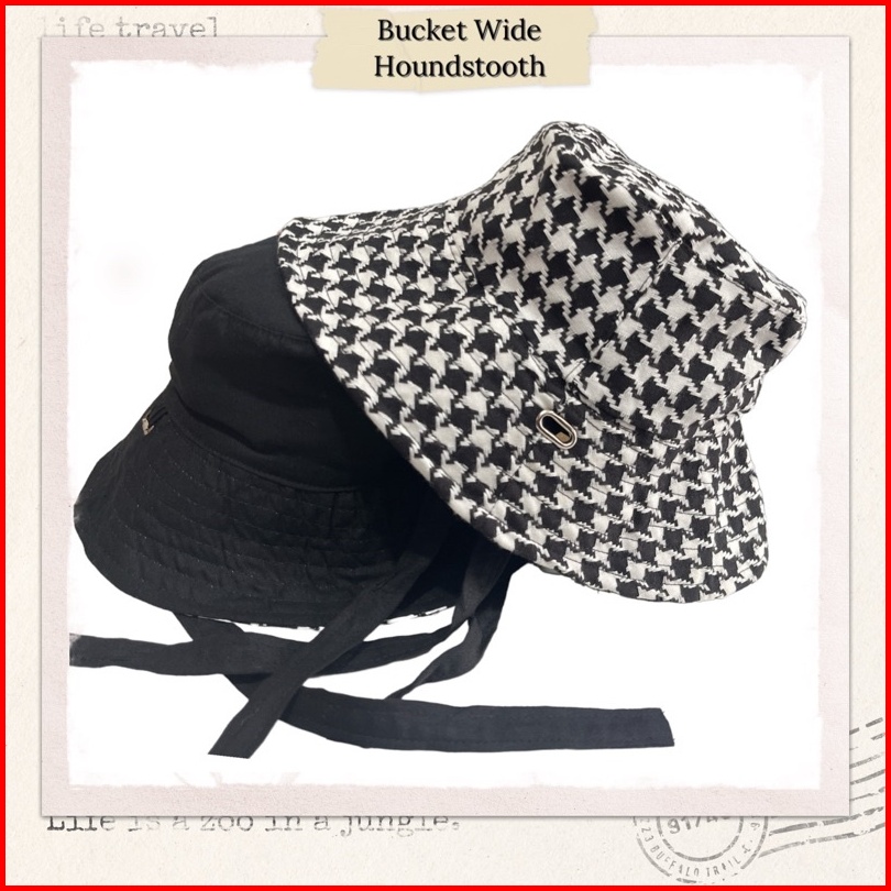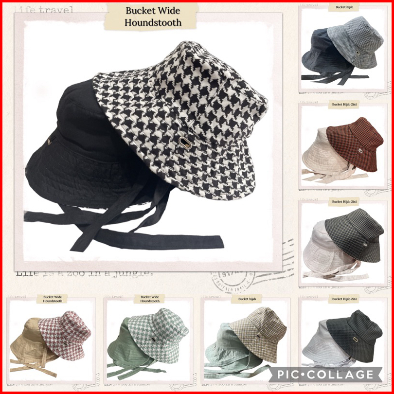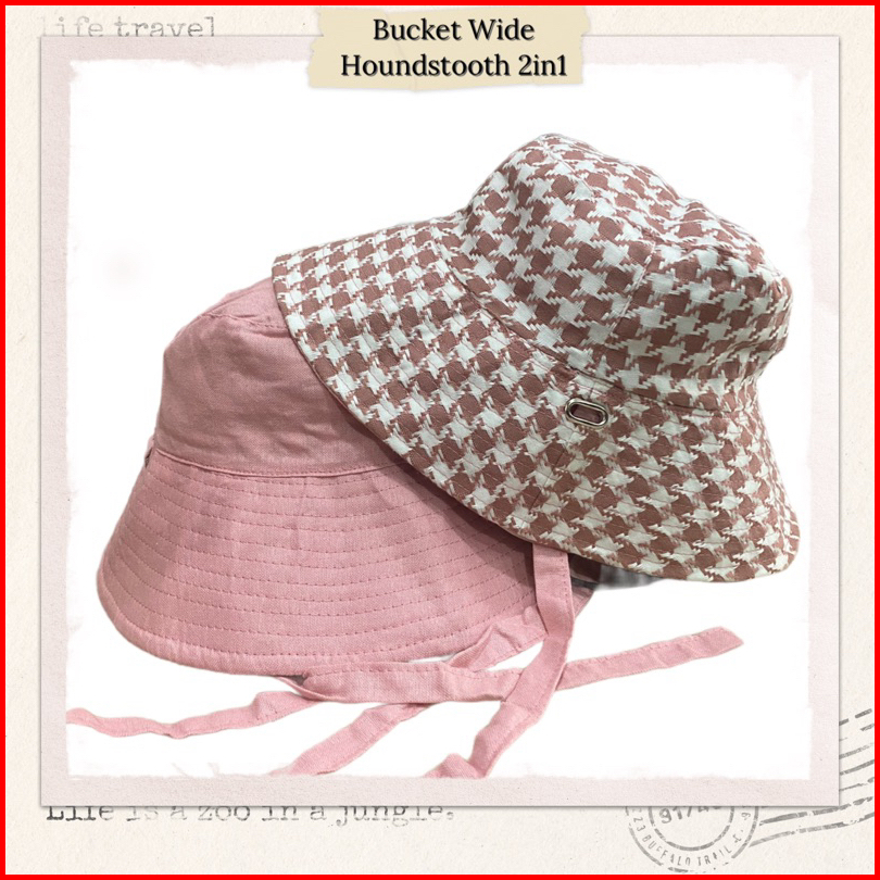 Bucket Hijab - Bucket Wide Houndstooth Dewasa Satu Topi Bisa Bolak-balik