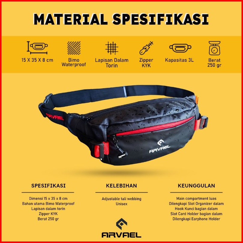 Tas Waistbag Waterproof Tas Anti Air Anti Hujan Arvael Xtram