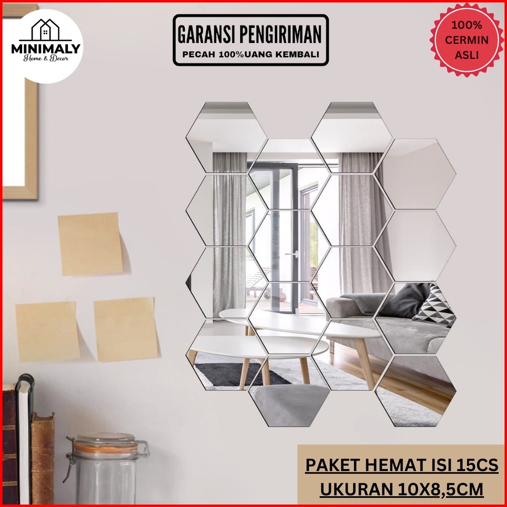 Minimaly14 Paket Hemat Isi 15 Pcs Kaca Cermin Hexagonal Ukuran 10x8 5 Cermin Asli Cermin Aesthetic