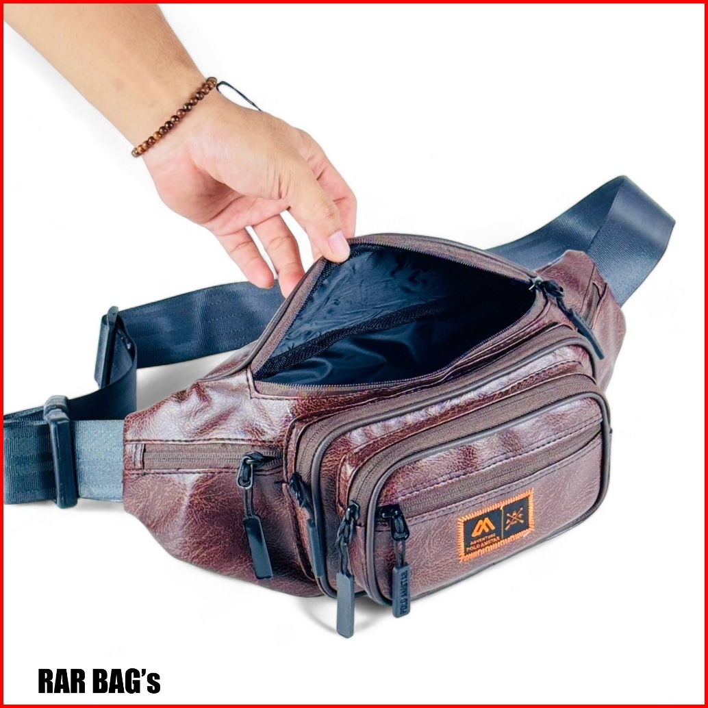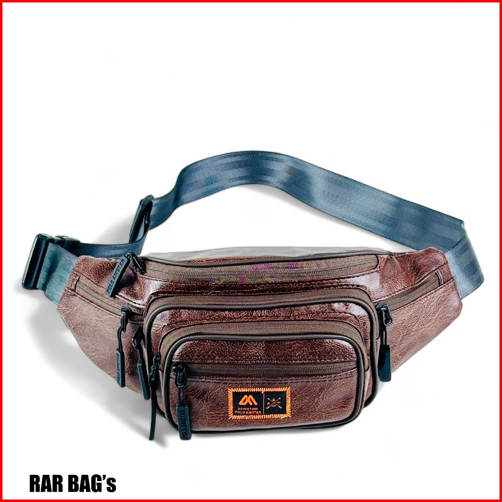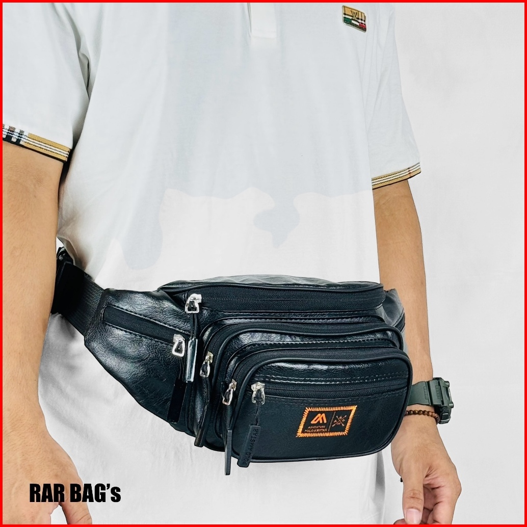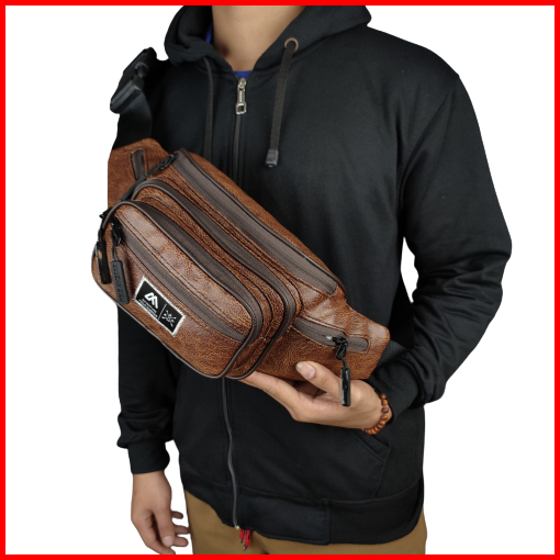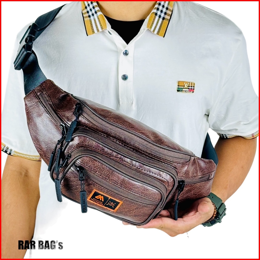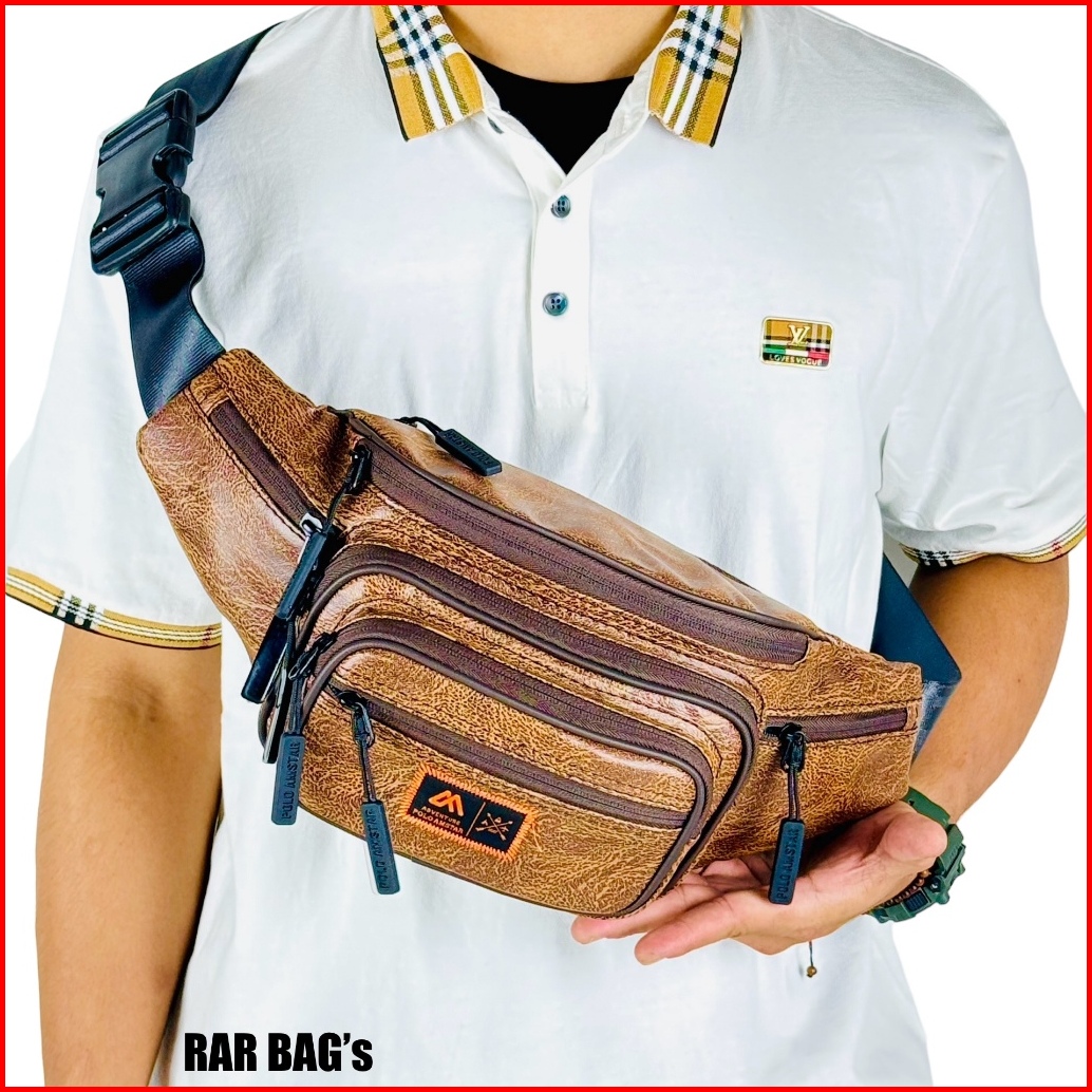 Tas Selempang Pria Tas Pinggang Kulit Pu Polo Amstar 7 Ruang Waistbag Waterproof Tas Pria Casual