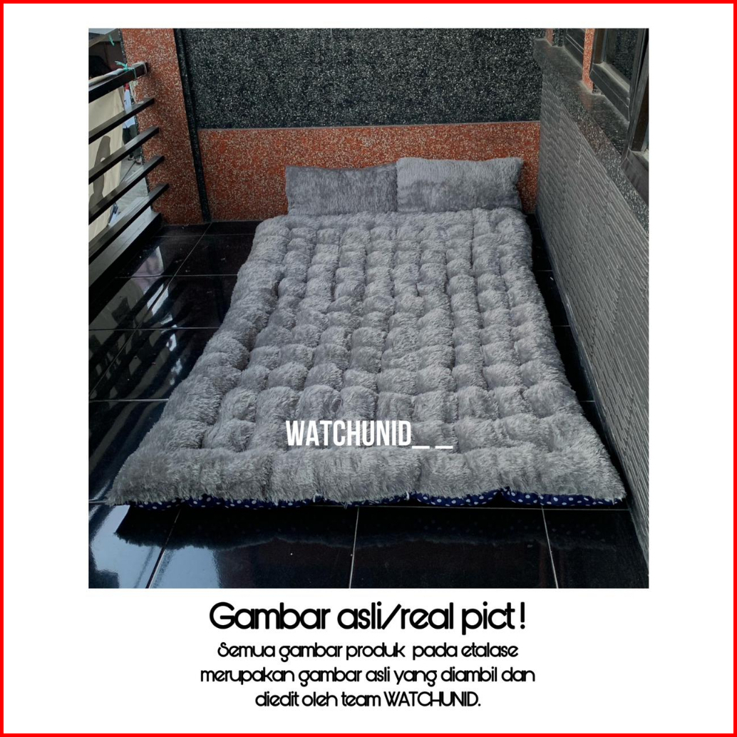 Surpet Bulu Rasfur Kasur Karpet Gender Ukuran 160 X 120 X 10cm Free 2 Bantal - Grey Abu