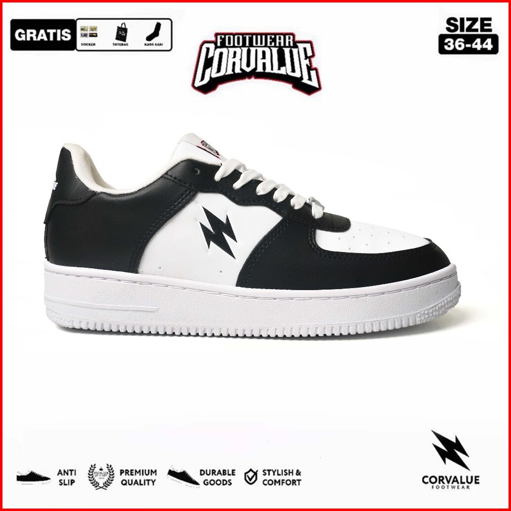 Corvalue - Sepatu Sneakers Kasual Corvalue Footwear Hiratsuka 007 Black White Original Casual Shoes