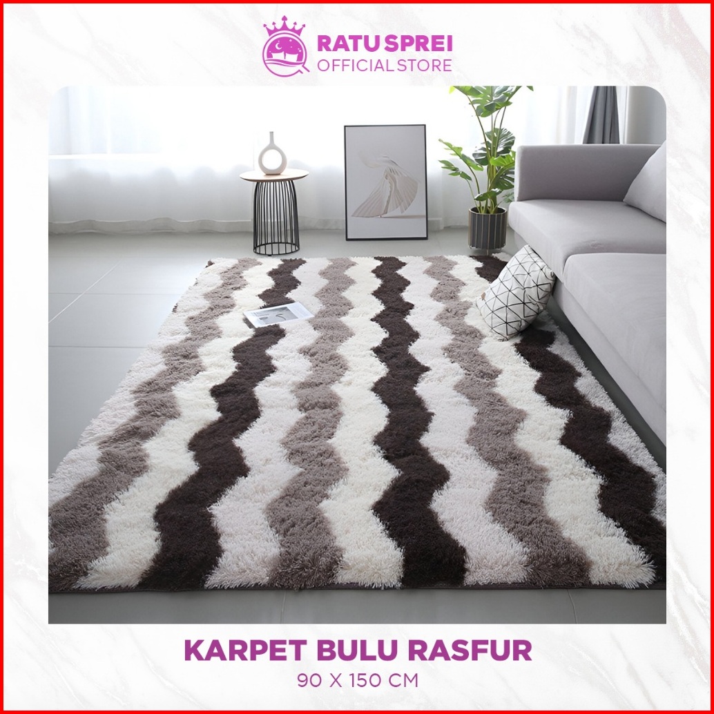 Karpet Bulu Rasfur 90x150cm Warna Kombinasi Bulu Halus Lembut Anti Selip Motif Abstrak - Ratu Sprei