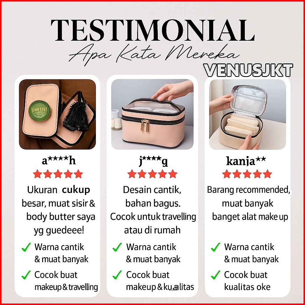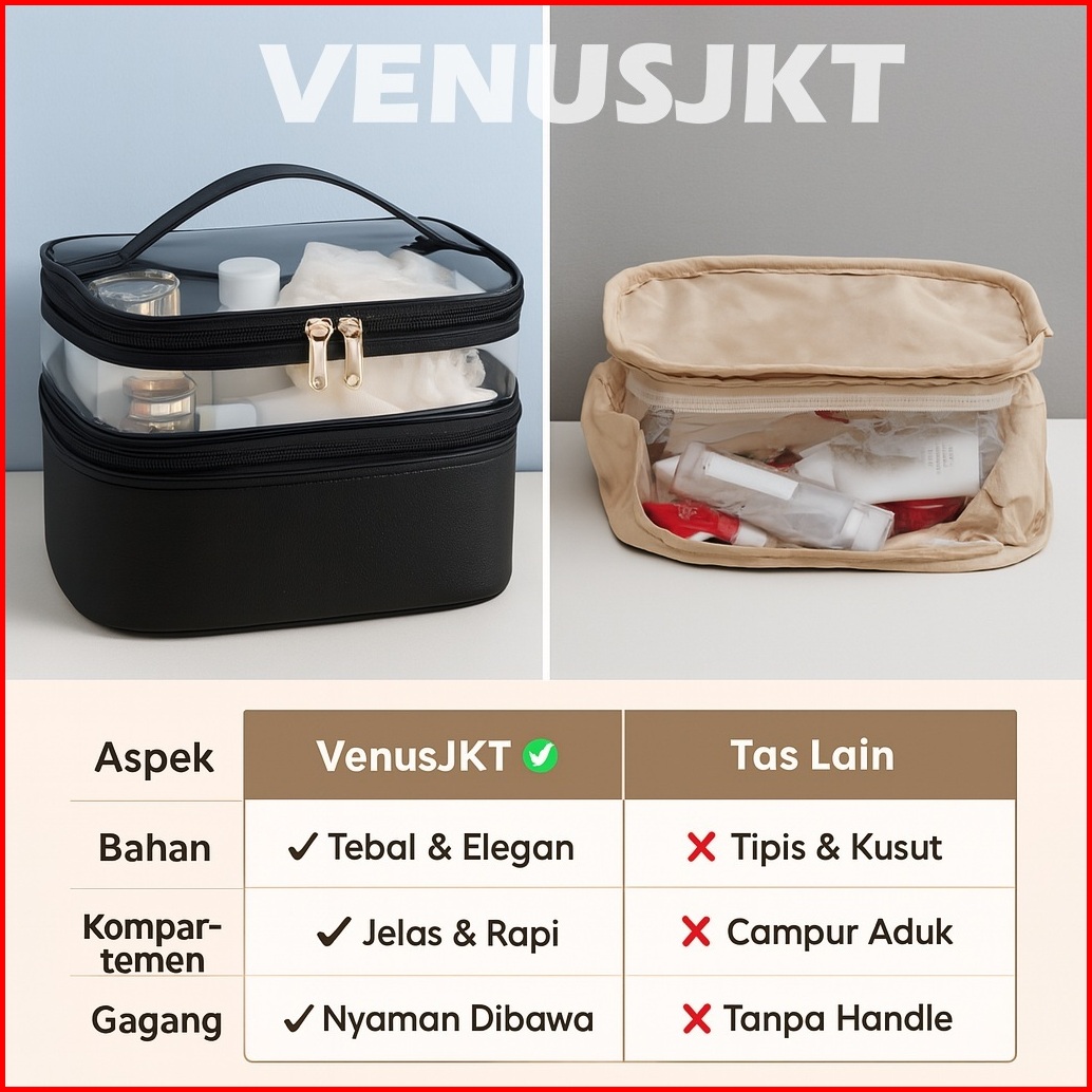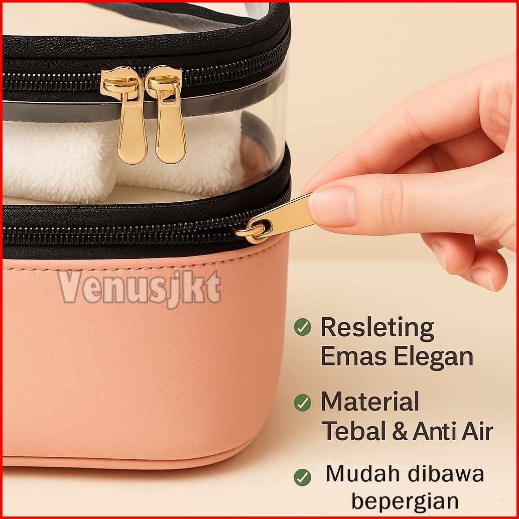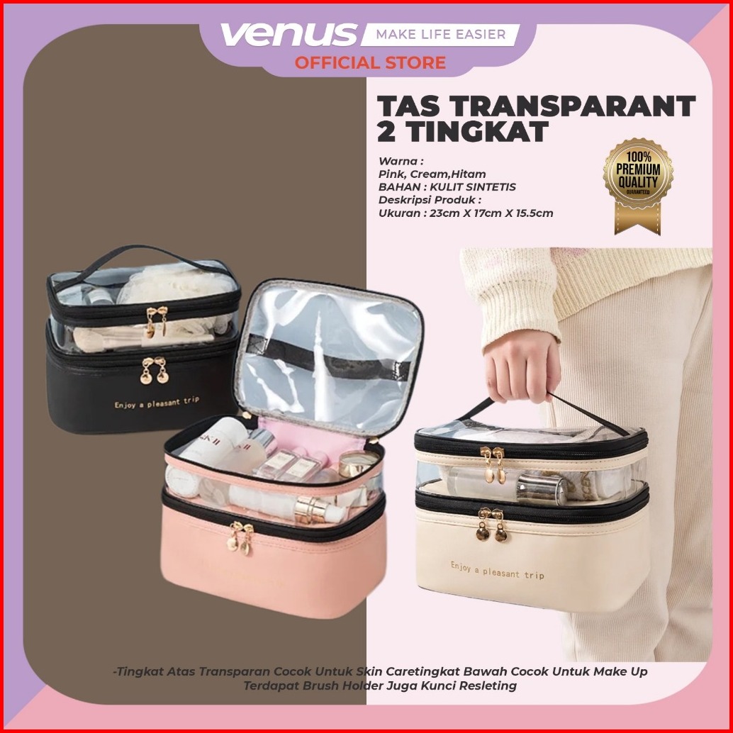 Tas Kosmetik Transparan Portable Pouch Travel Korea Tas Kosmetik Set 2 Tingkat Tas Kosmetik Pu Tahan Air Tempat Penyimpa