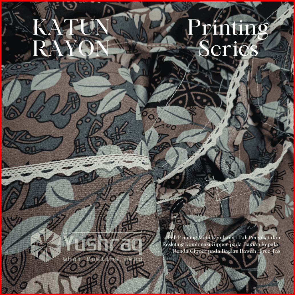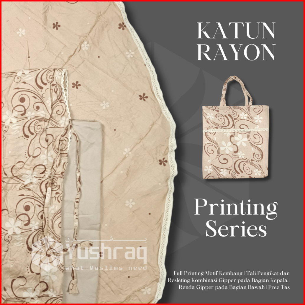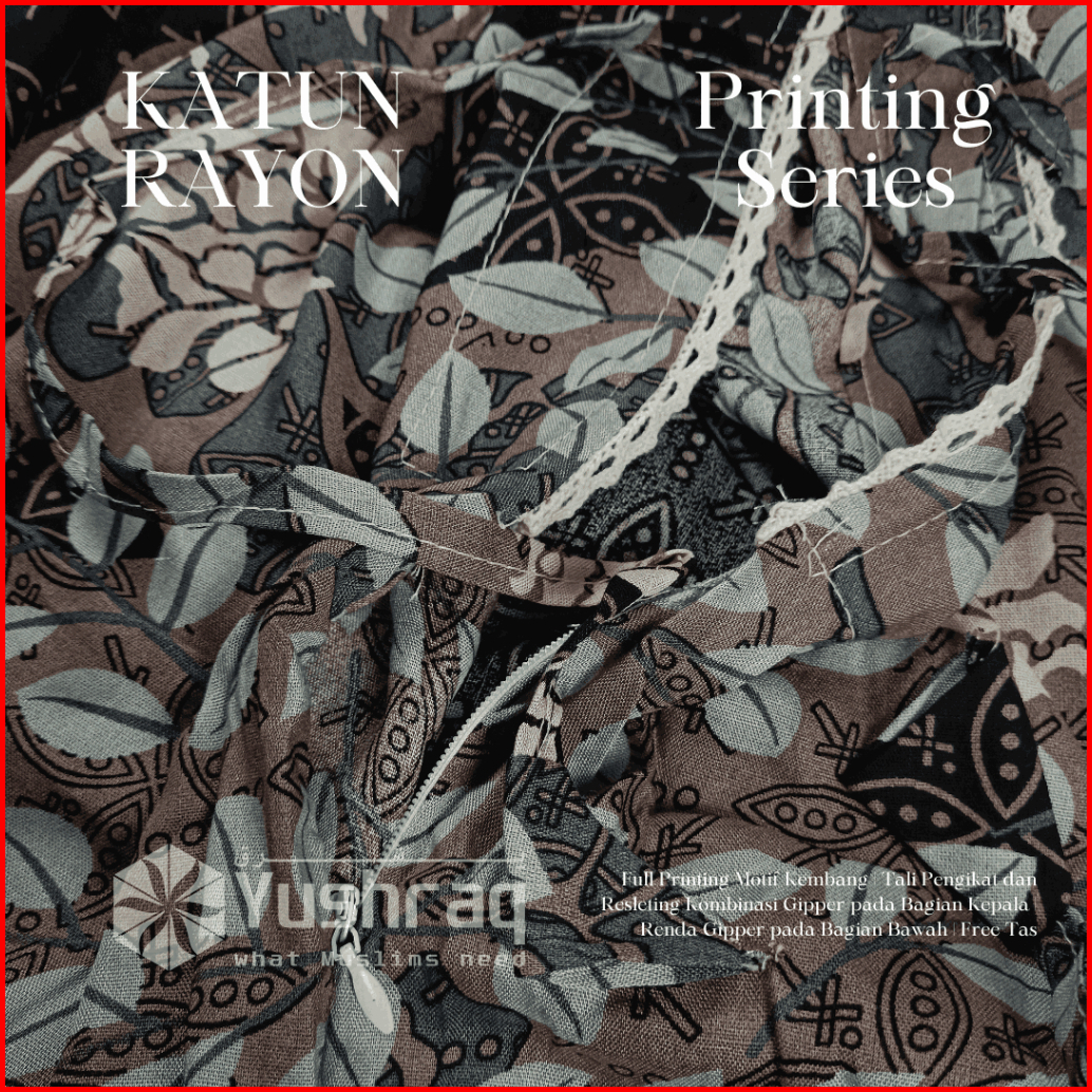 Mukena Dewasa Katun Rayon Renda Gipper Resleting Printing Series