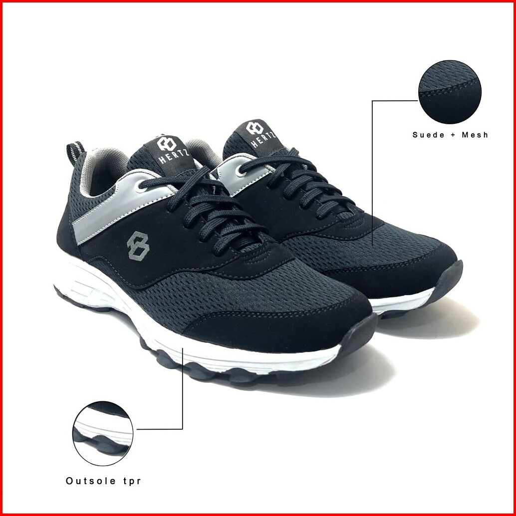 Sepatu Sneakers Pria Terbaru H 3354 Brand Hertz Sepatu Sport Sekolah Kerja Hitam Trendi Berkualitas