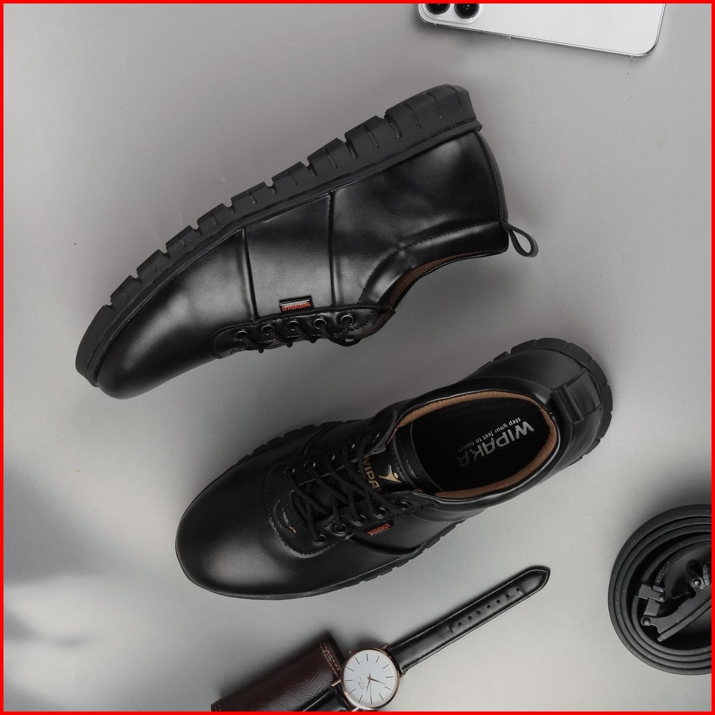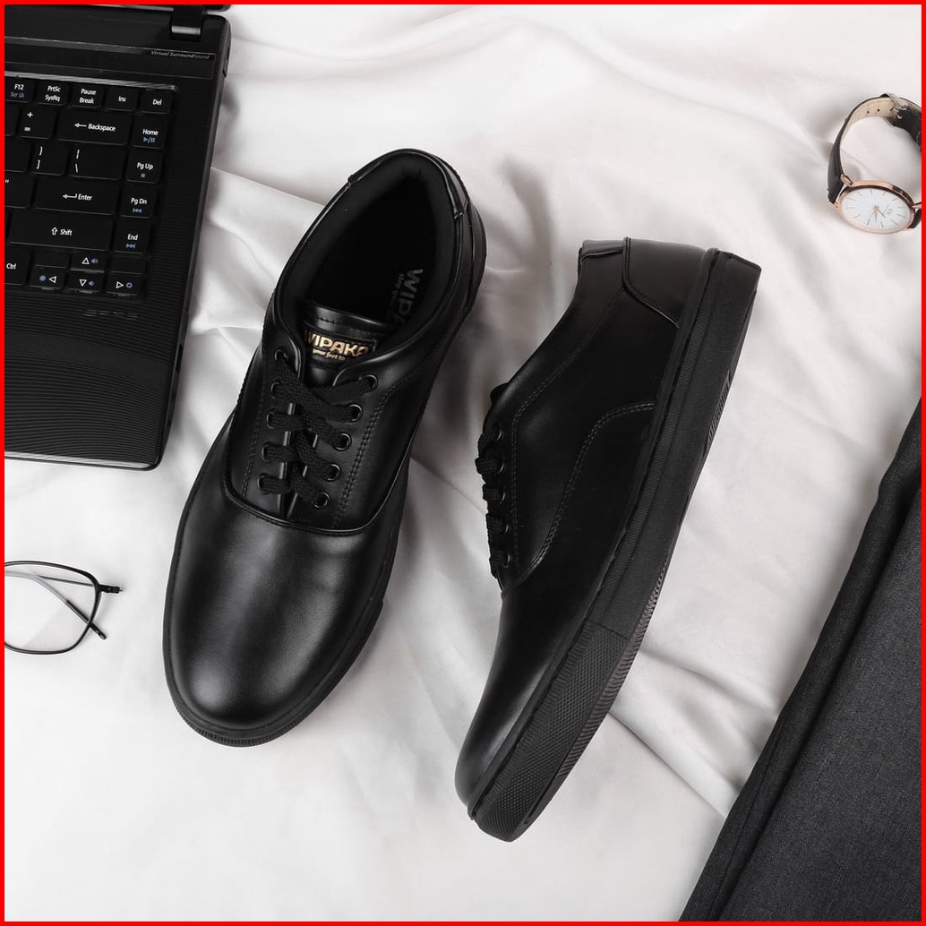 Original - Sepatu Kasual Sneakers Pria Pantofel Kulit Formal Oxford Full Black