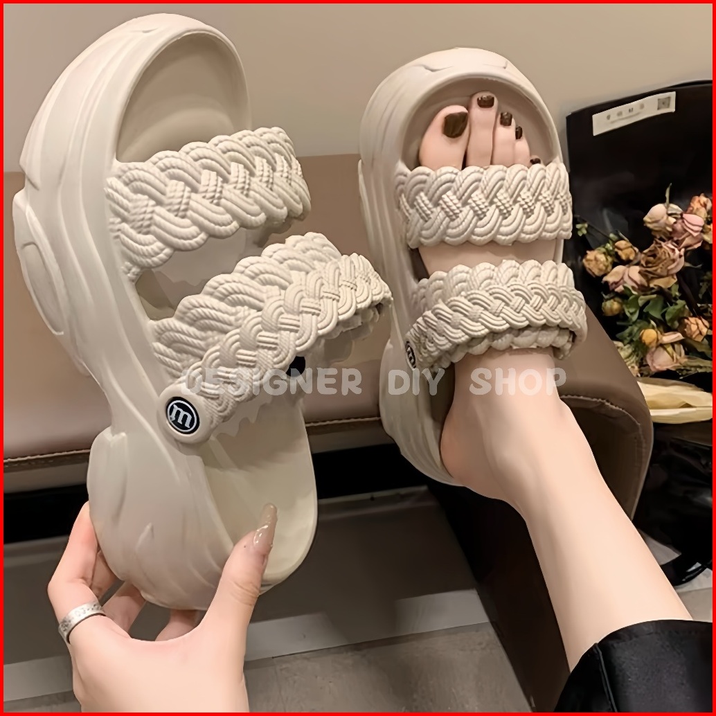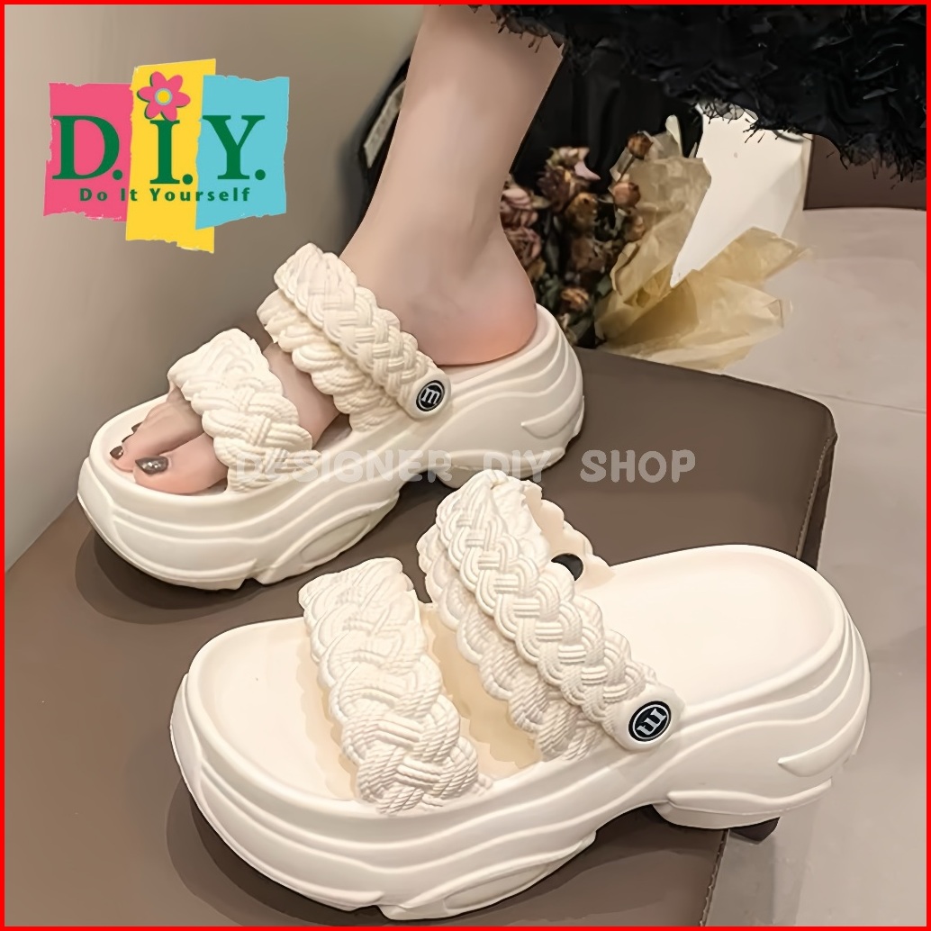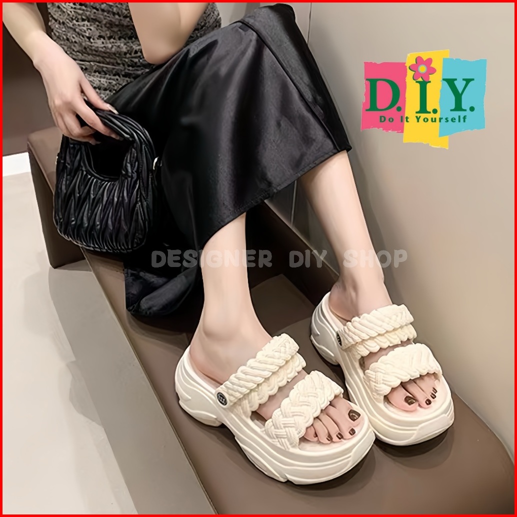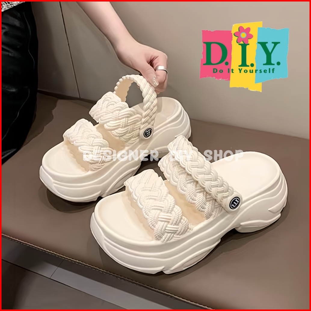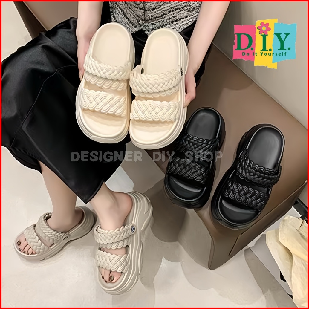Sepatu Sandal Tali Wanita Premium Emput Selop Wedges Jelly Tebal 7cm