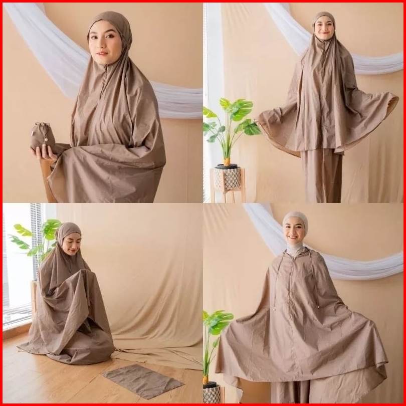 Mukena Tebus Murah Mukenah Dewasa Travelling Parasut Korea Polos 2in1 Resleting - Random Warna