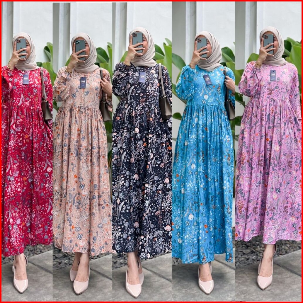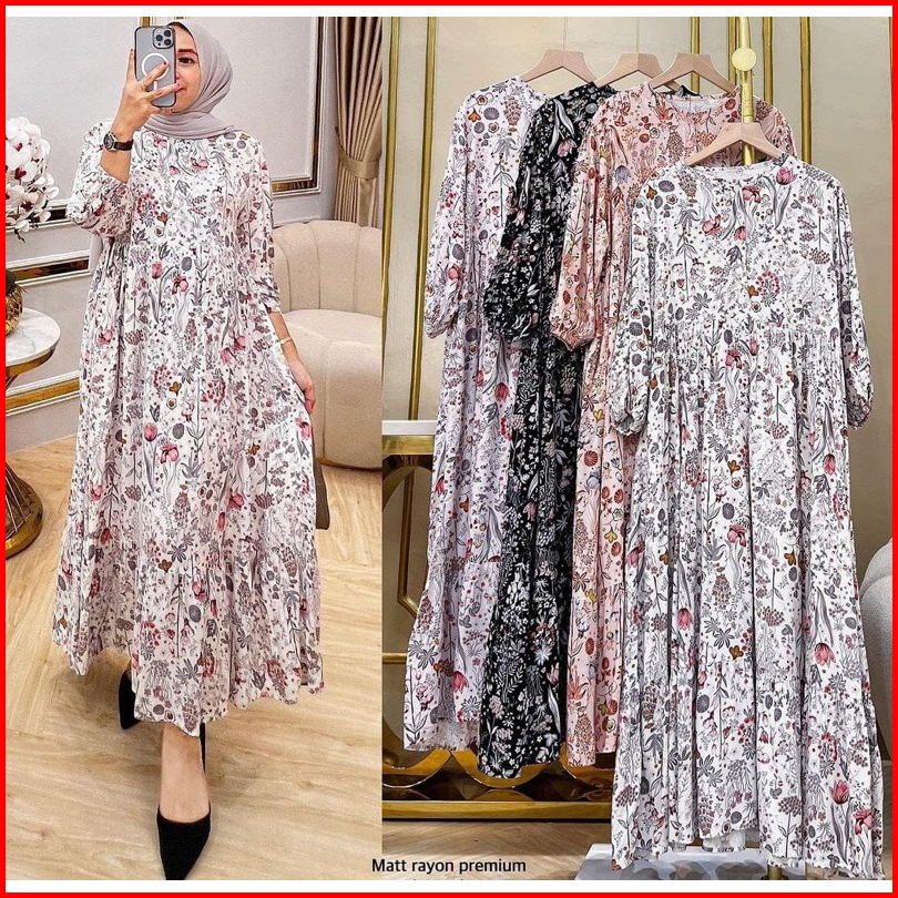 Midi Dress Rayon Jumbo Midi Viral Motif Rayon Halus
