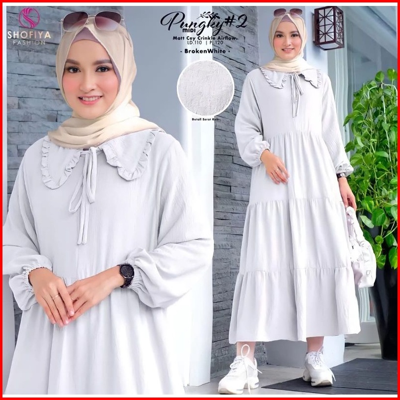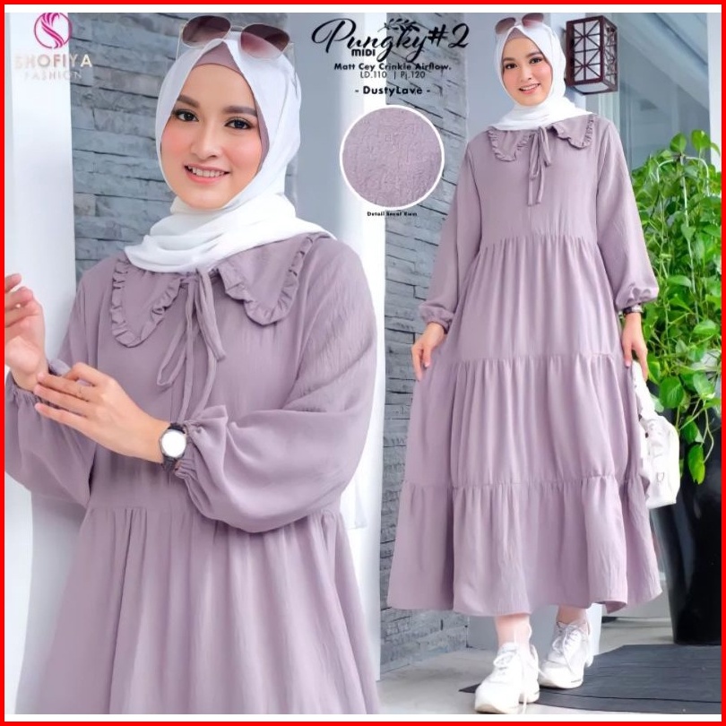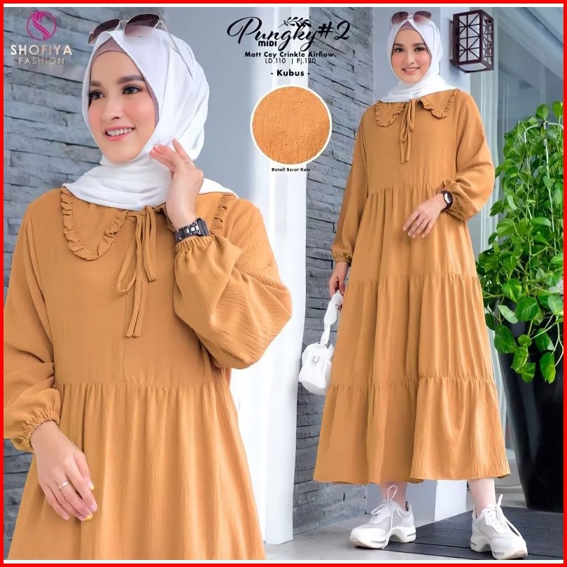 Pungky Midi Dress Gamis Bahan Crinkle Airflow High Quality