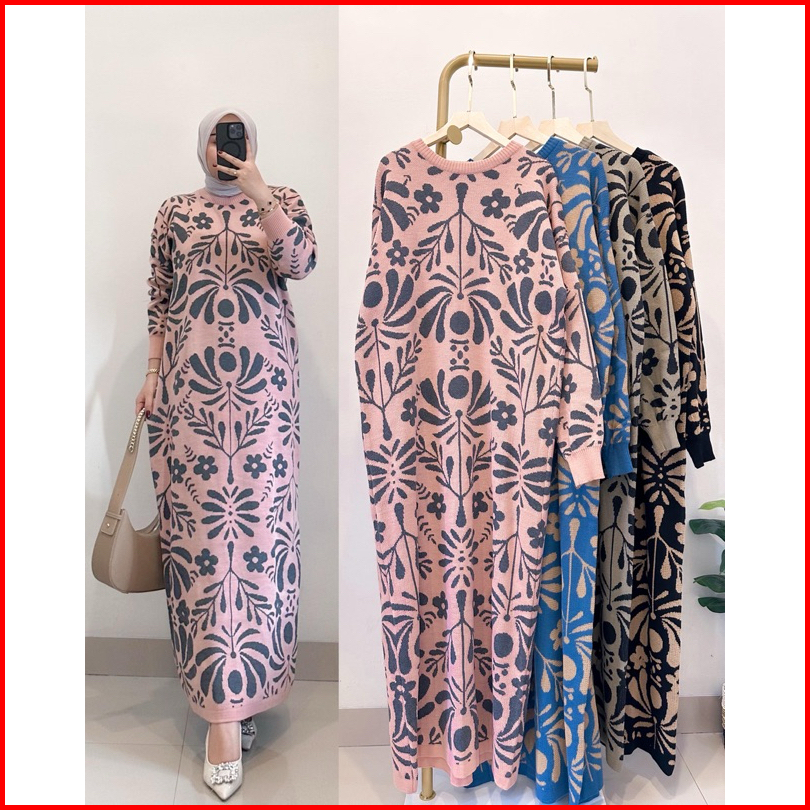 Indahcollection.ic - Dress Gamis Ukir Andien - Maxy Rajut Import Premium Terbaru Terlaris Terviral