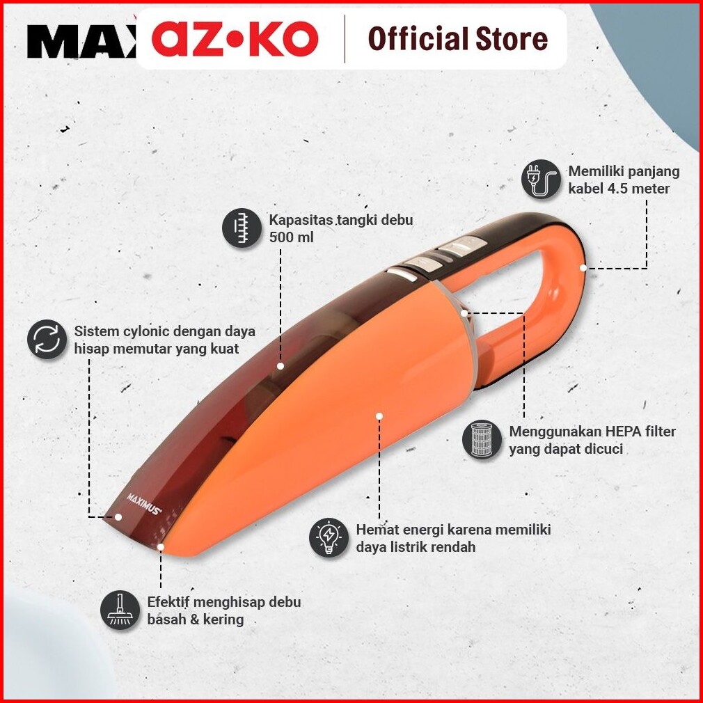 Azko Maximus Vacuum Cleaner Wet Dry Mobil 95 Watt Dc 12v Alat Pembersih Vakum Cleaning Tool Mesin Vacuum Cleaner Penyedo