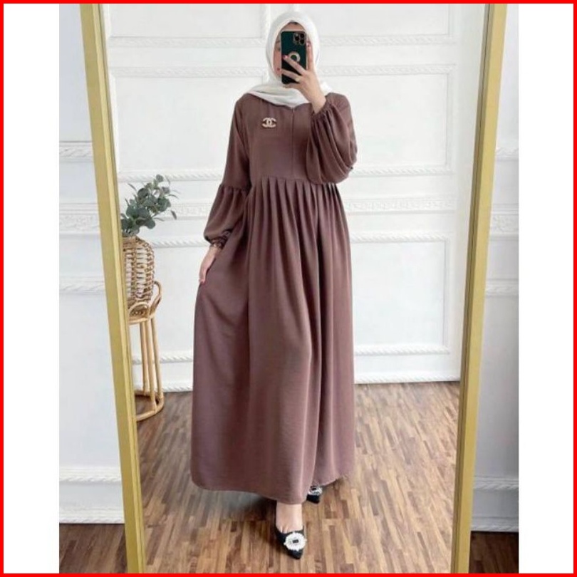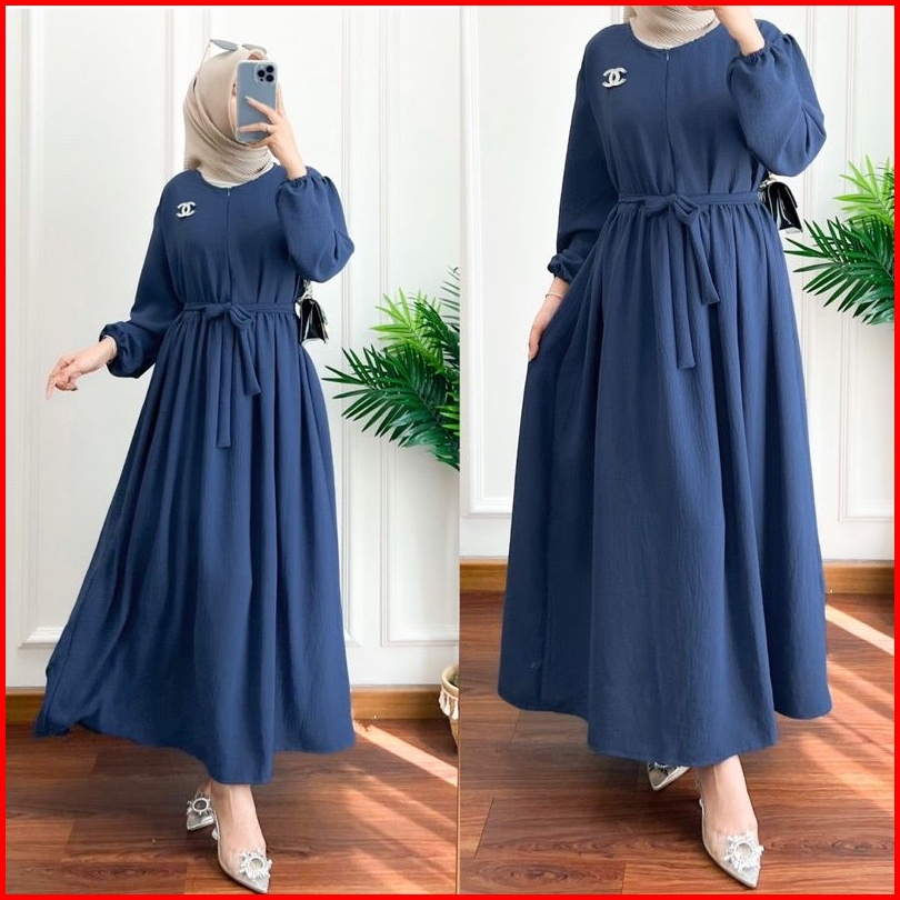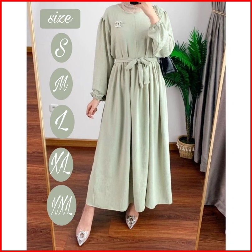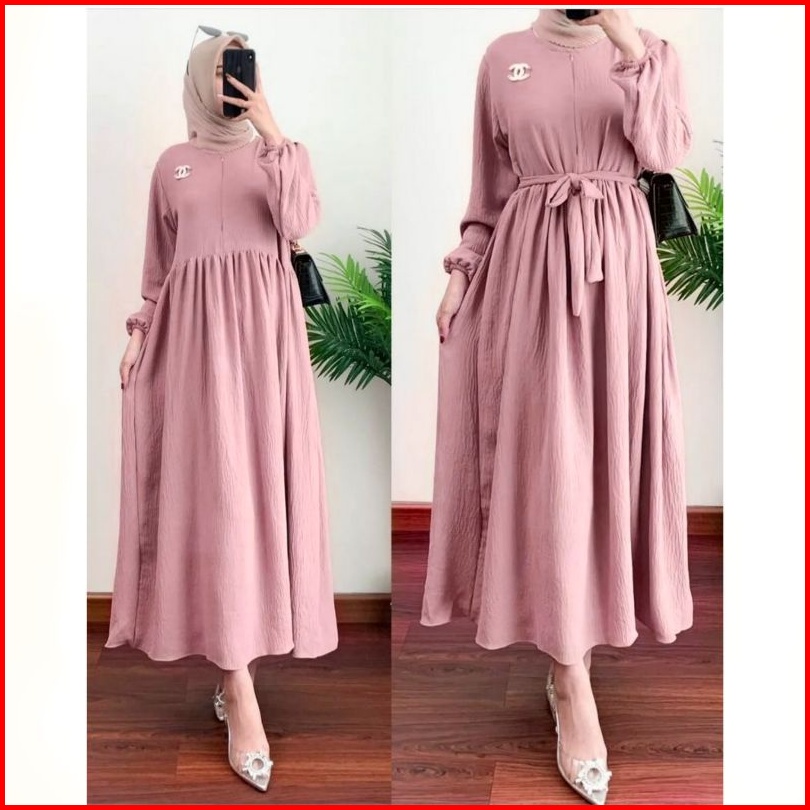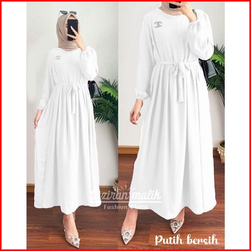 S M L Xl Xxl Bavina Midi Dress Putih Polos Perempuan Terbaru Gamis Remaja Crincle Airflow Premium Korean Look Style Wani
