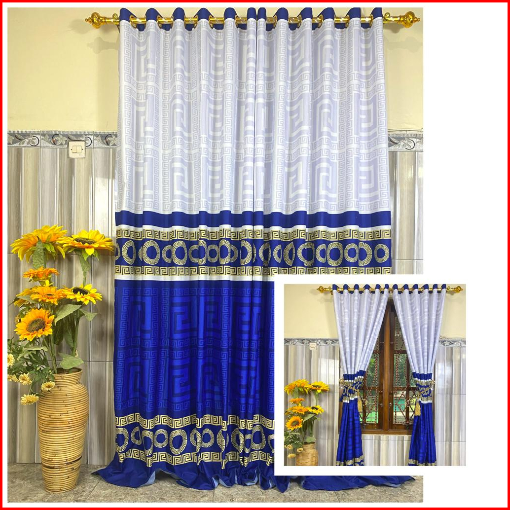 Gorden Jendela Pintu Murah Minimalis Hordeng Tirai Korden Motif White Blue Smokring 12 Lubang