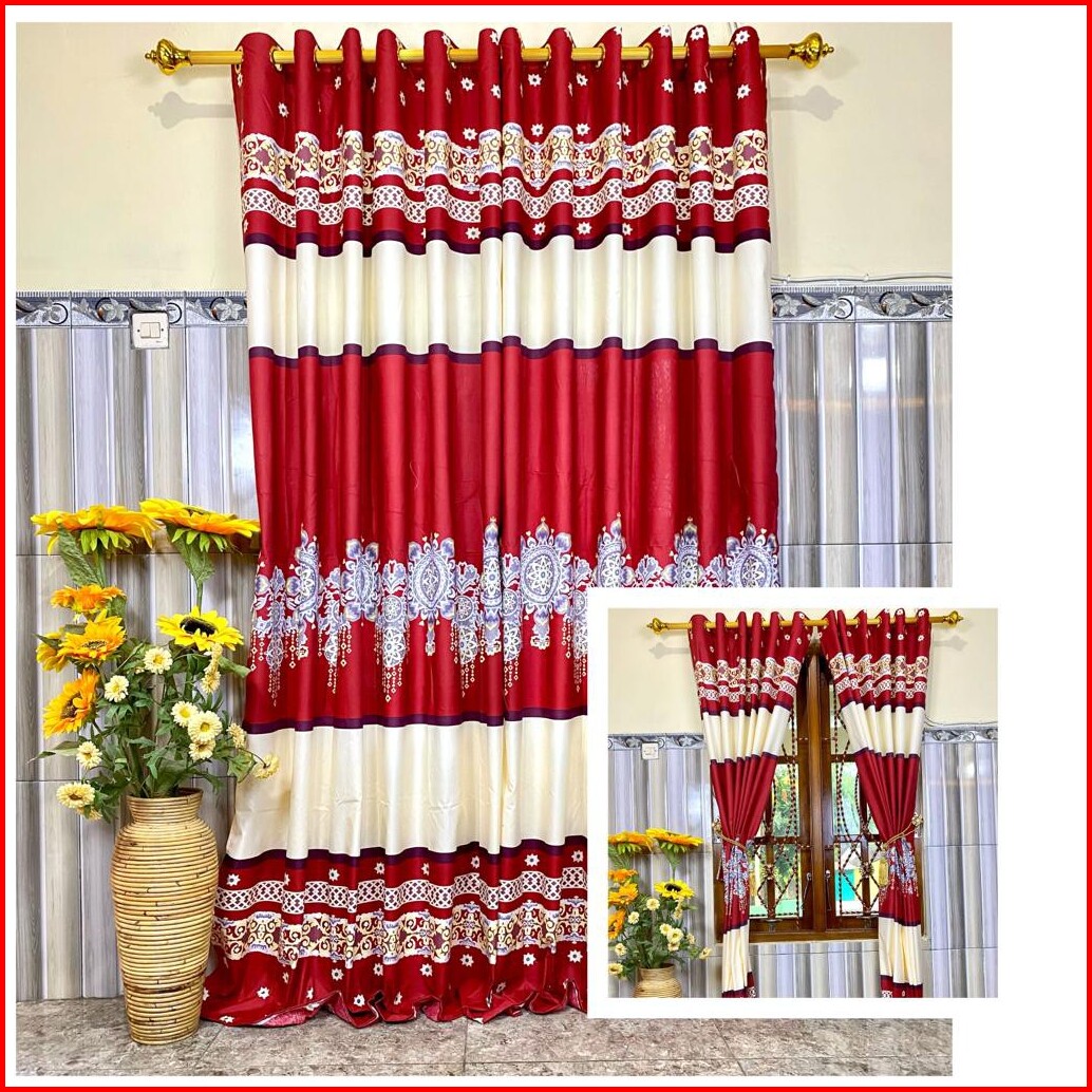 Gorden Jendela Pintu Minimalis Hordeng Tirai Korden Murah Smokring 12 Lubang Motif Red Alia