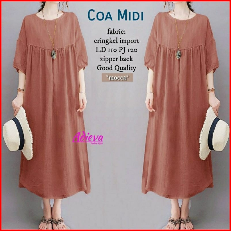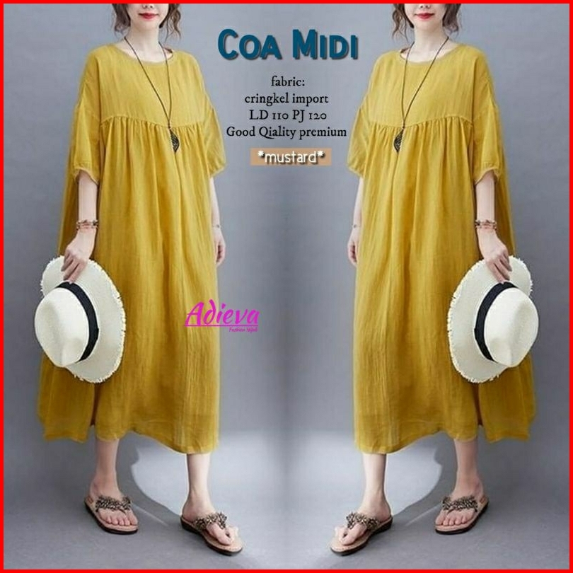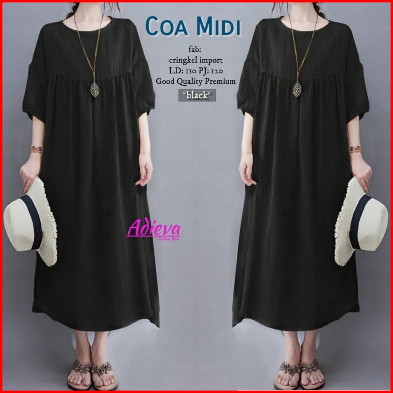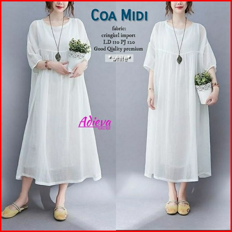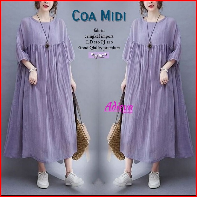 Coa Midi Dres Party Dress Midi Cringkel Import Premium Pakaian Pesta Kasual