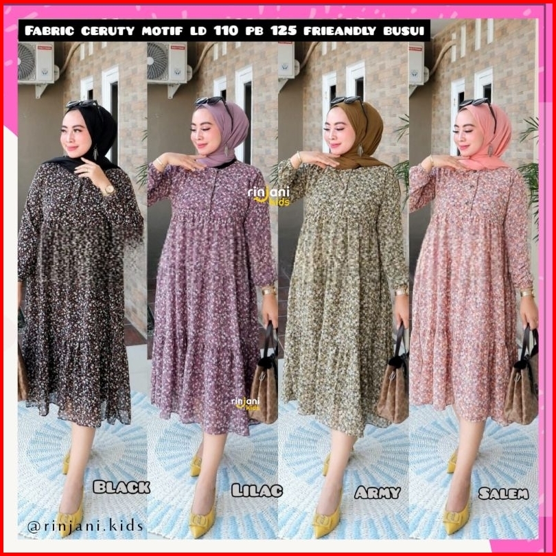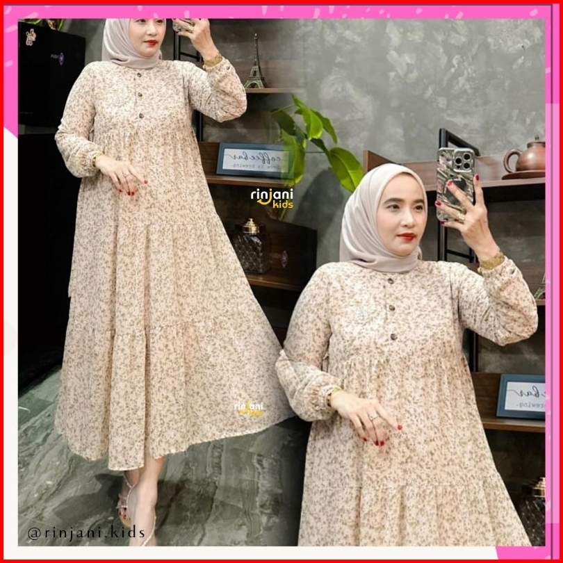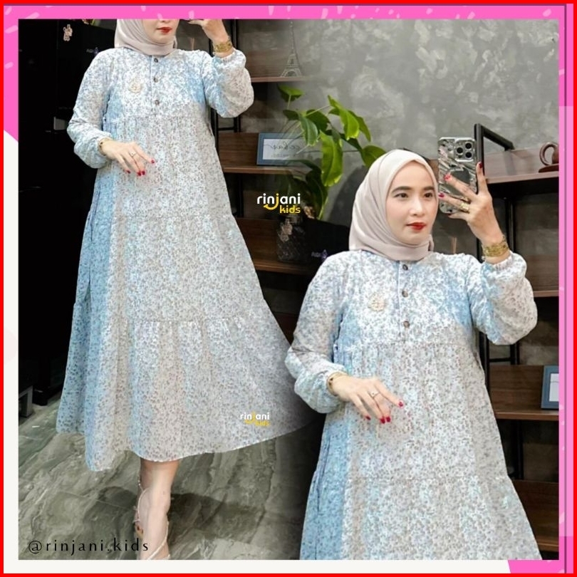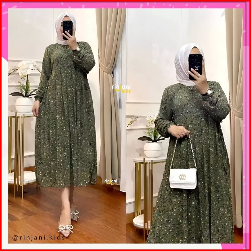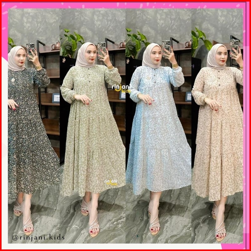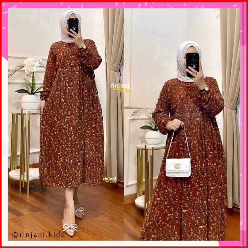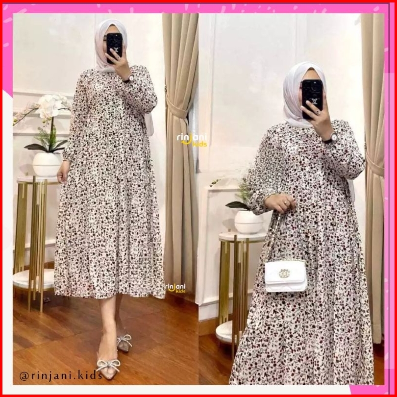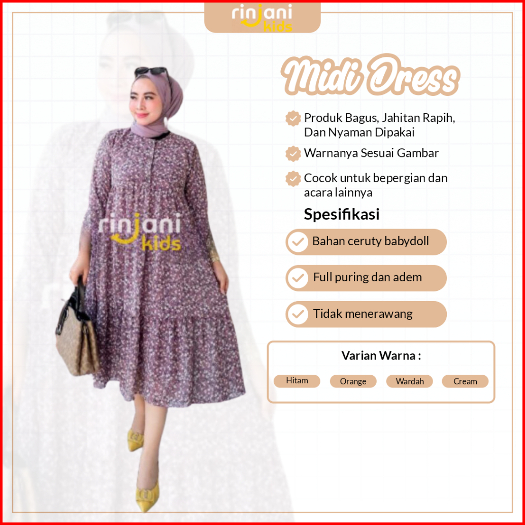 Midi Dress Long Dres Motif Warna Pastel Kekinian