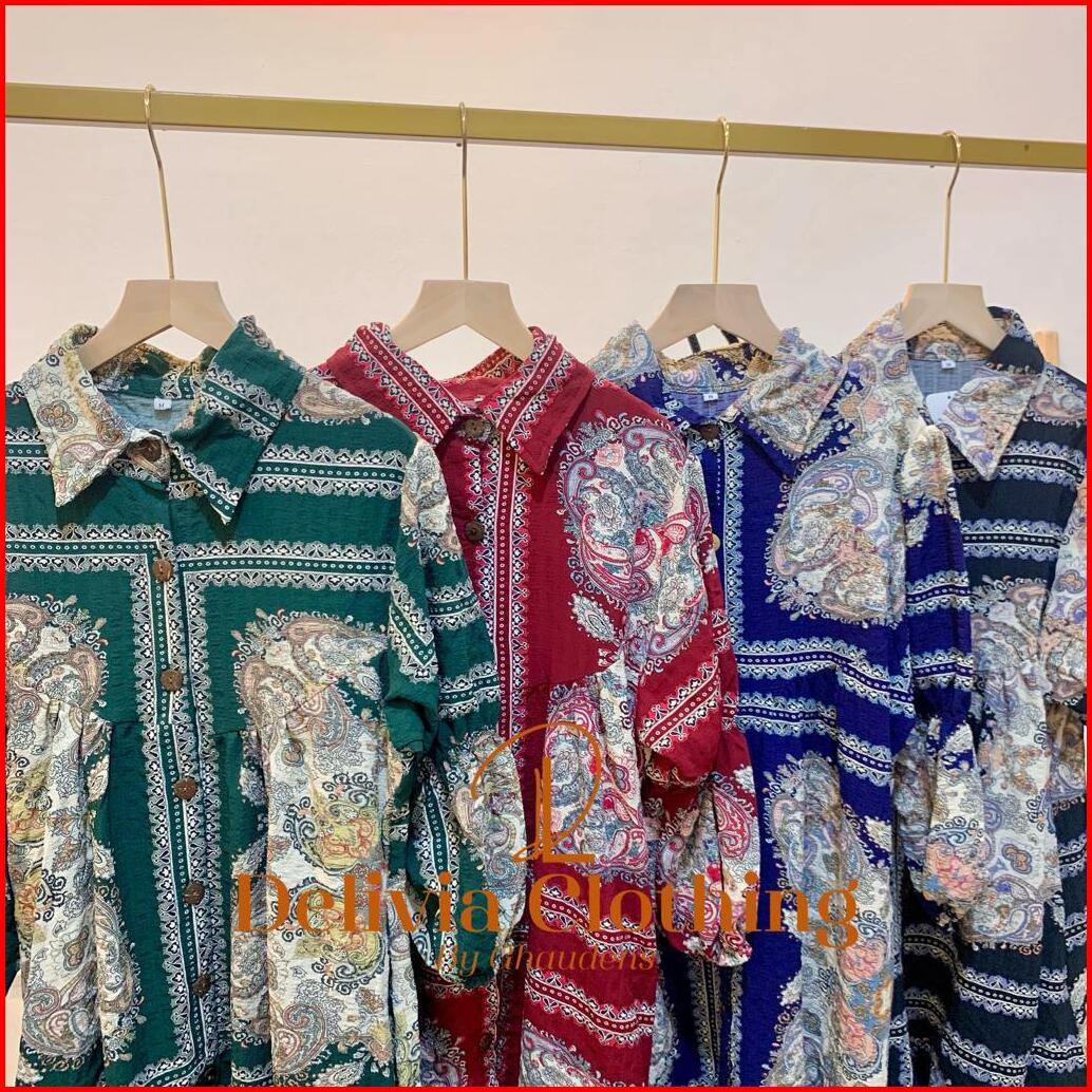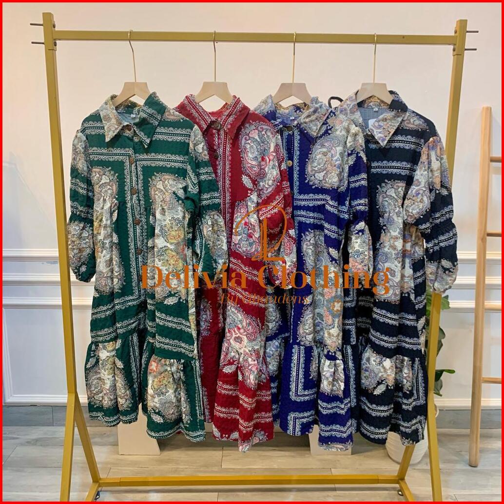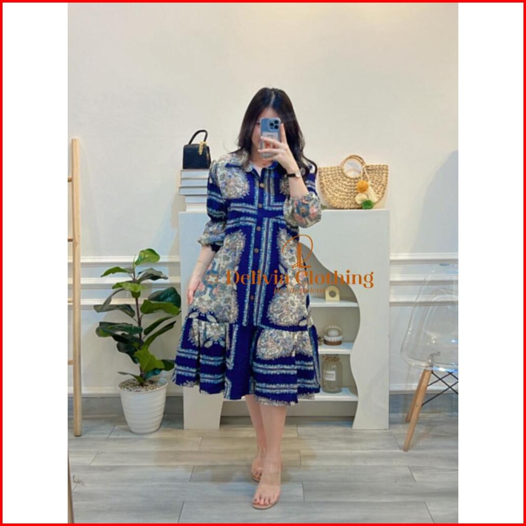 Delivia - Midi Dress Neka Button Crincle 7583-13 14