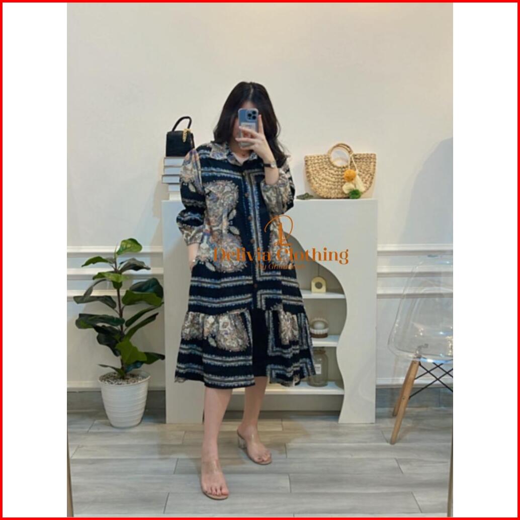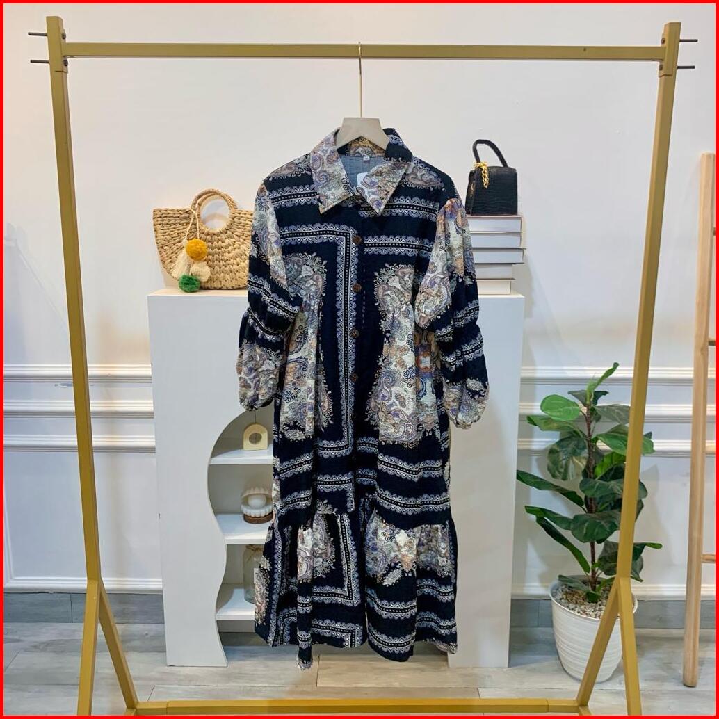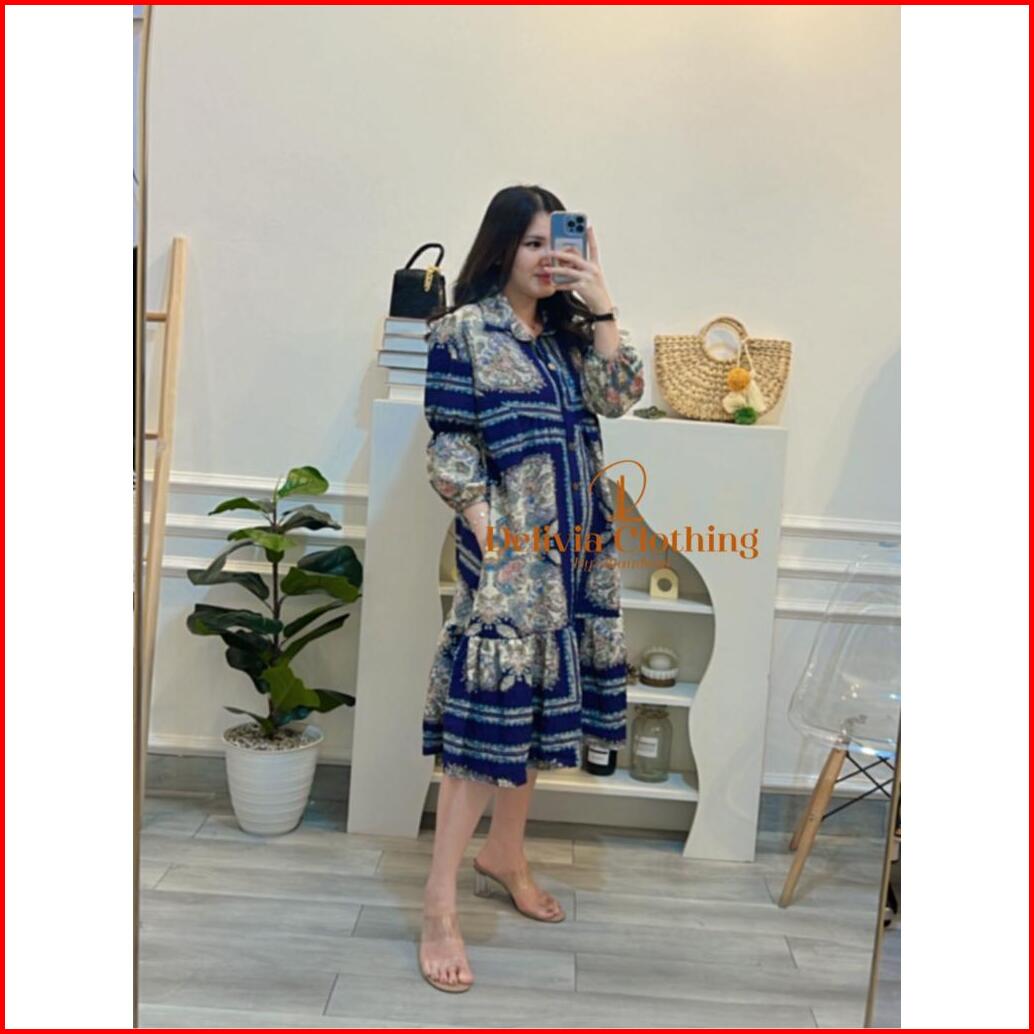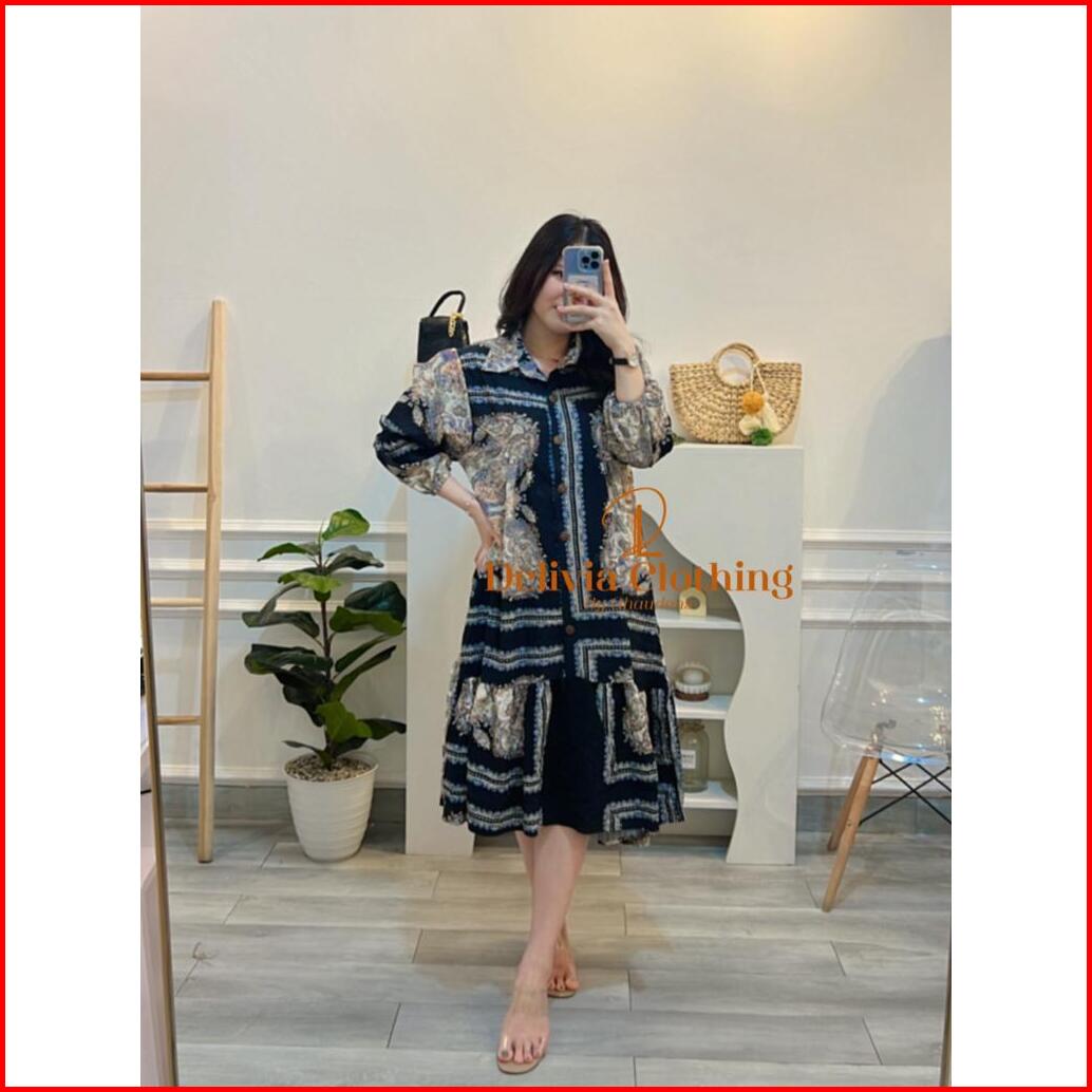 Delivia - Midi Dress Neka Button Crincle 7583-13 14