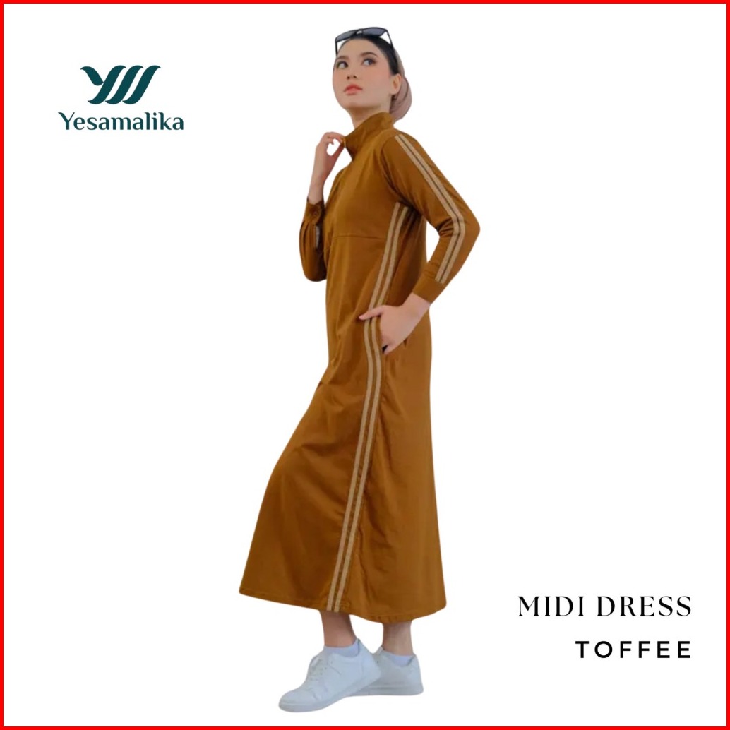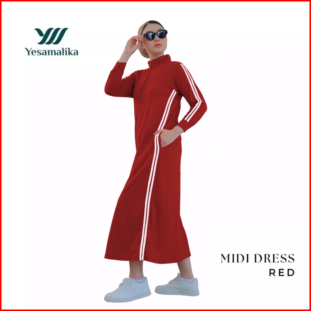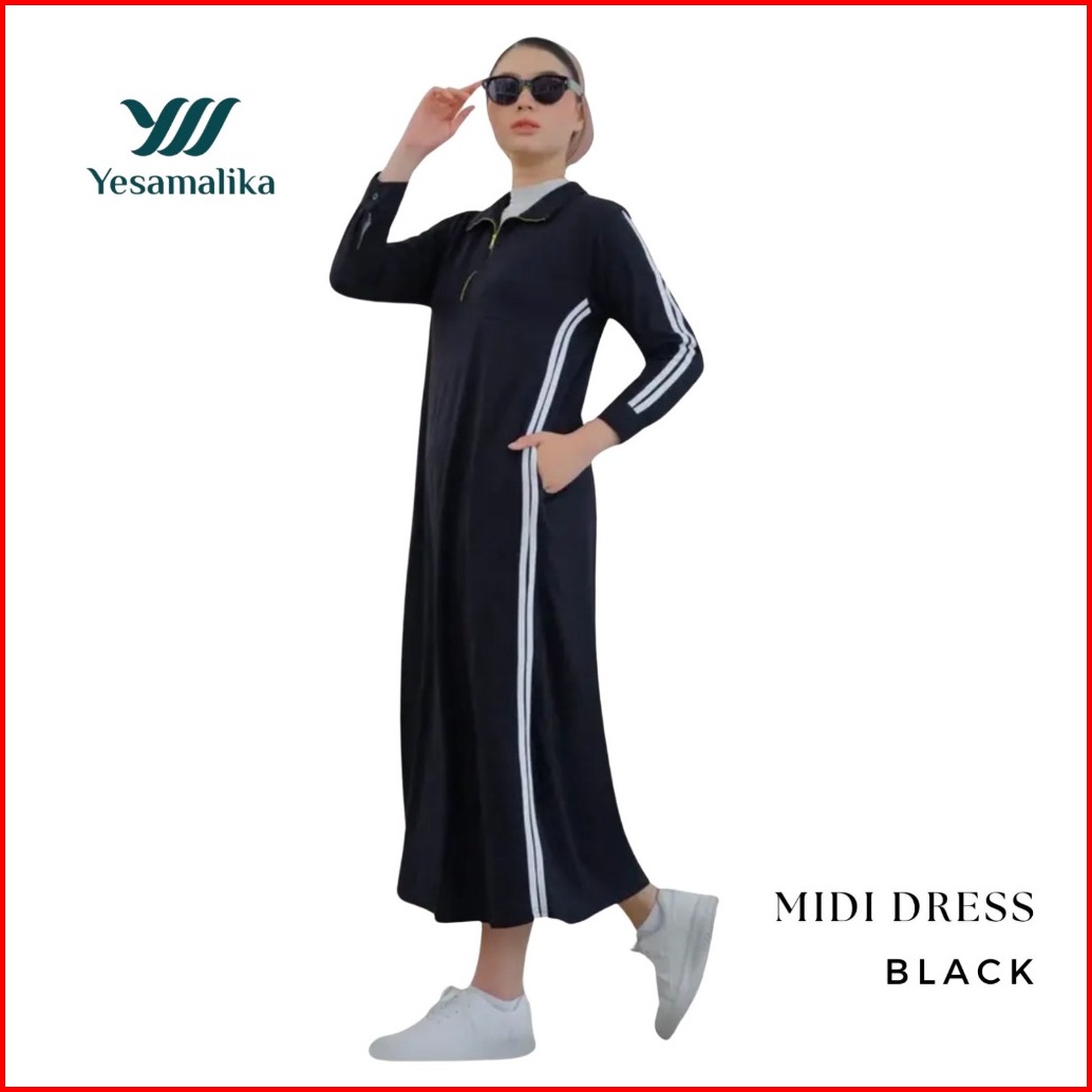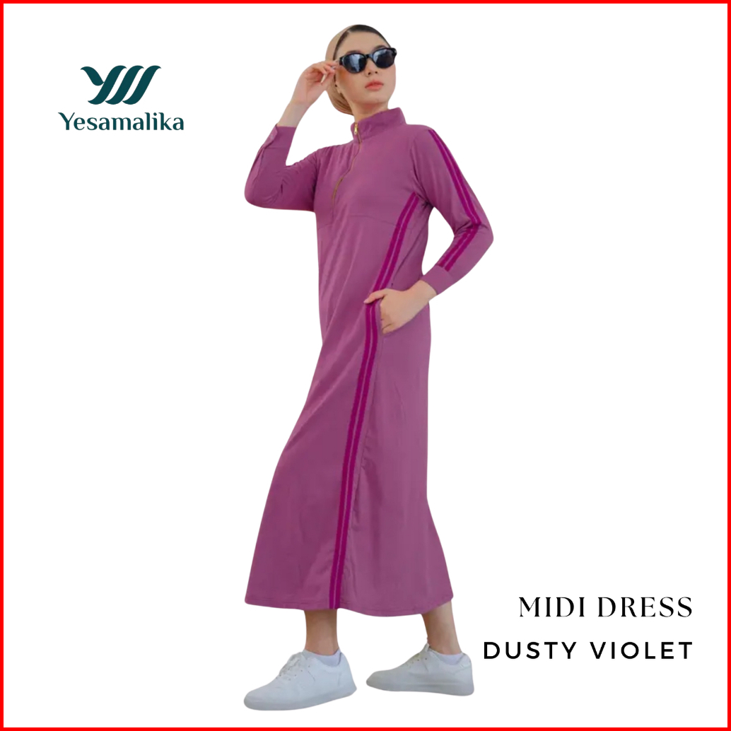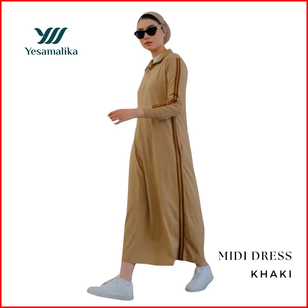 Yesamalika Midi Dress Dress Kaos Wanita 7 8 Bahan Cotton Combed 24s Varian Warna All Size Reguler