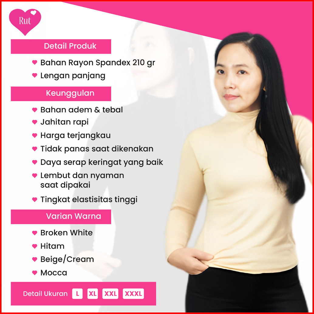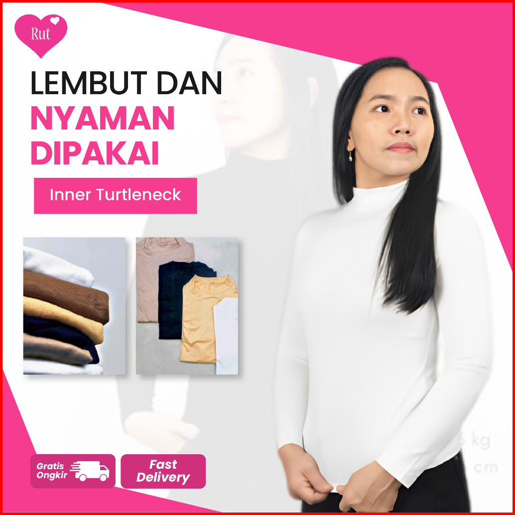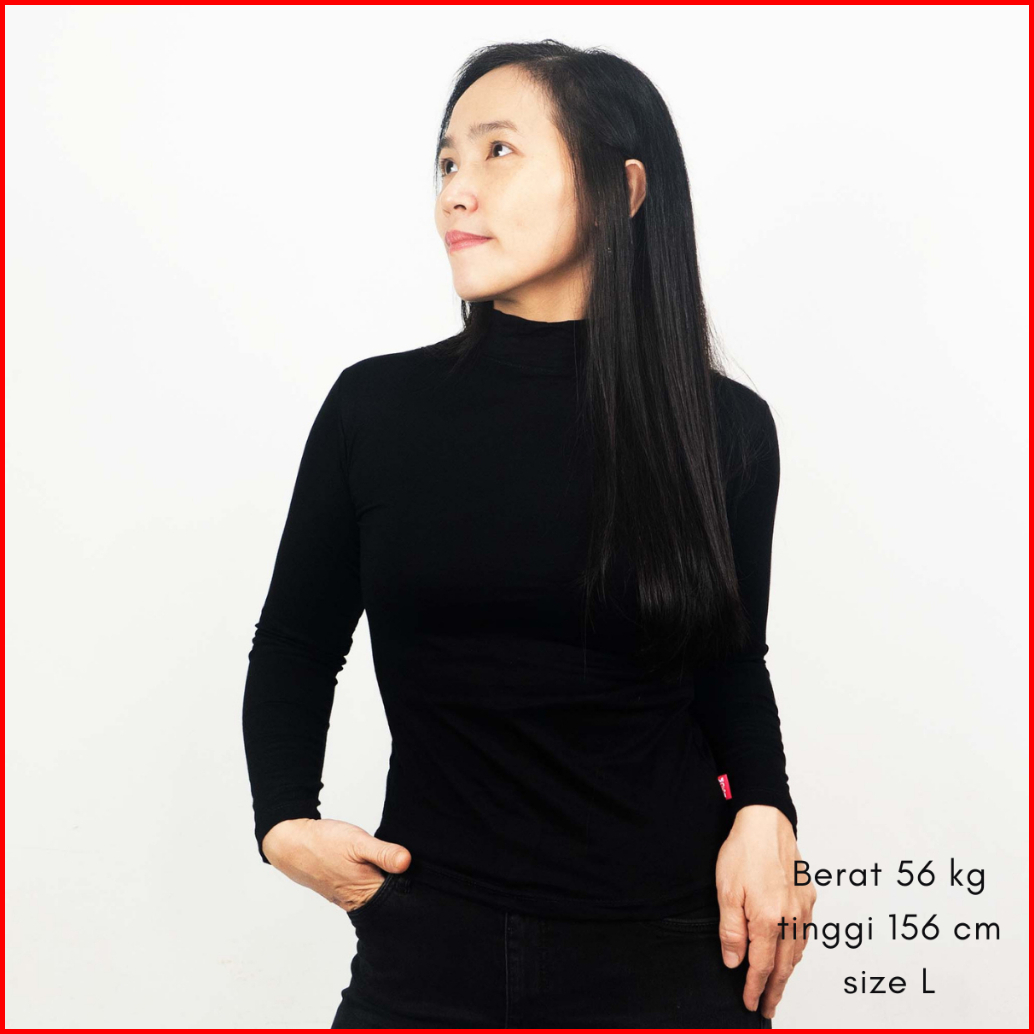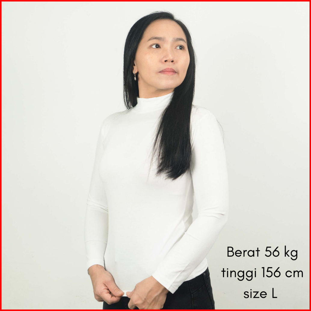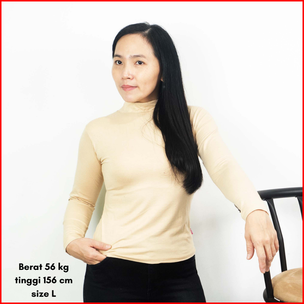 Kaos Inner Manset Wanita Turtleneck Polos Lengan Panjang Spandex Rayon Adem Nyaman Digunakan