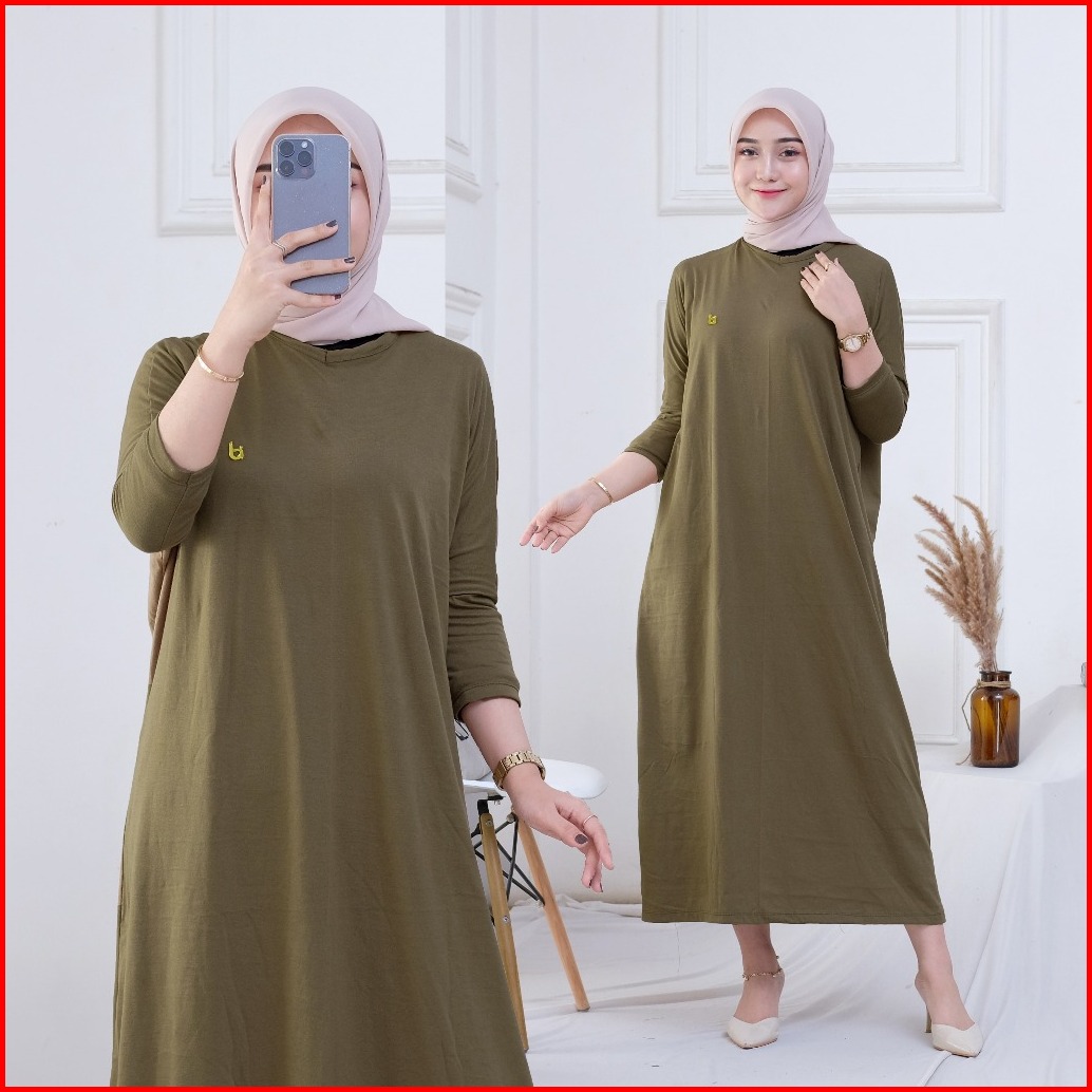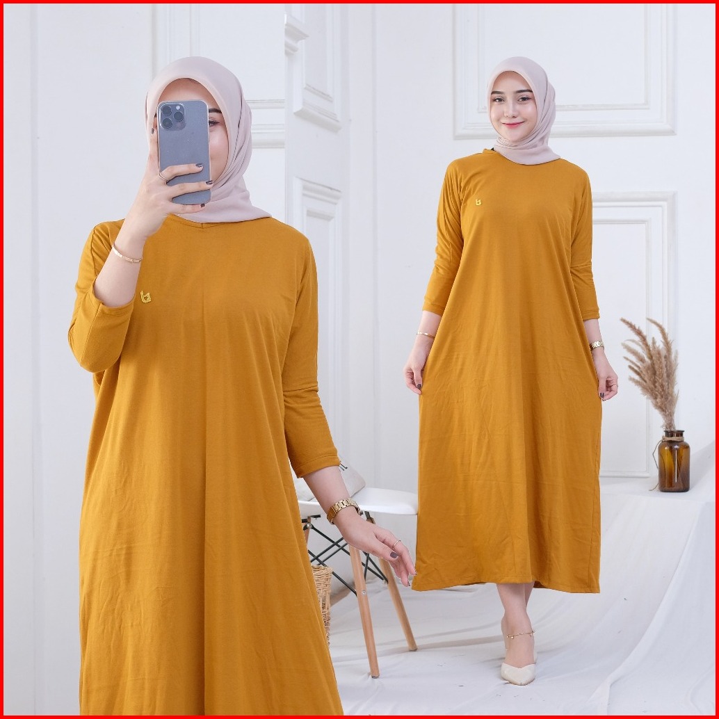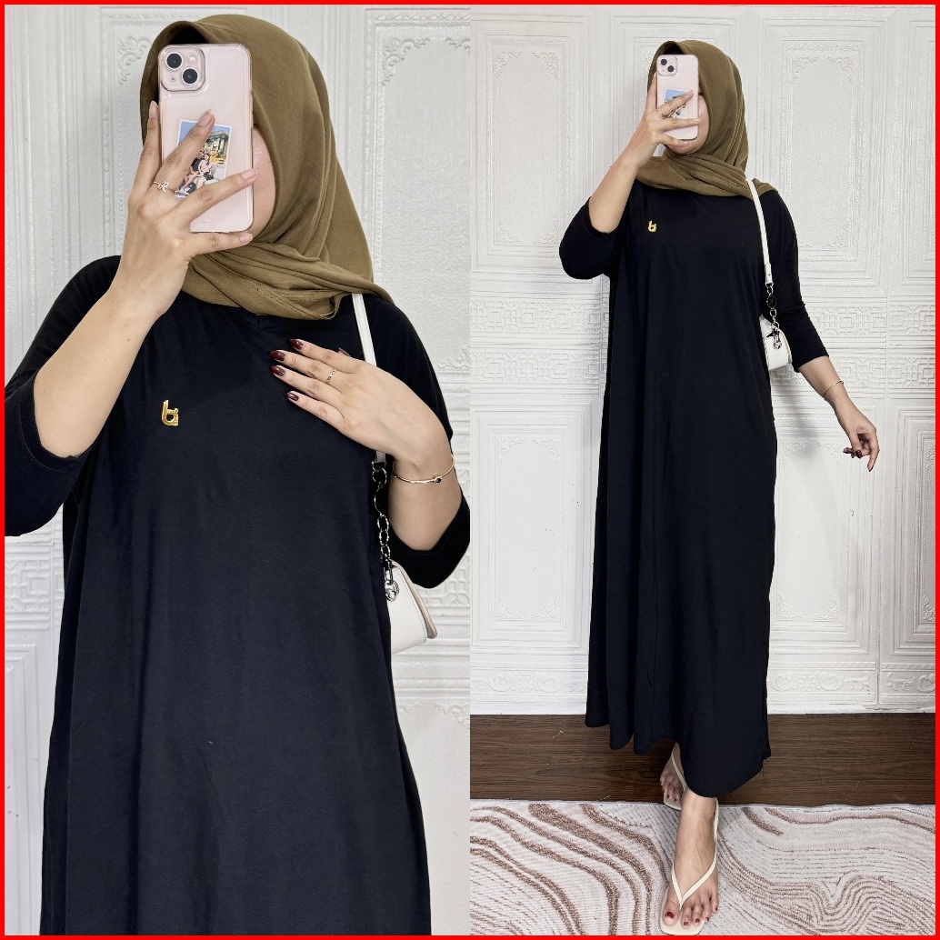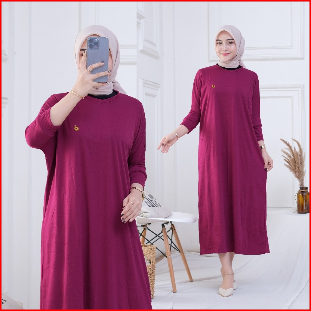 Bi - Lavina Batwing Midi Dress Kaos Cotton Combed 30 S Fashion Muslim Polos Wanita Terbaru Kekinian