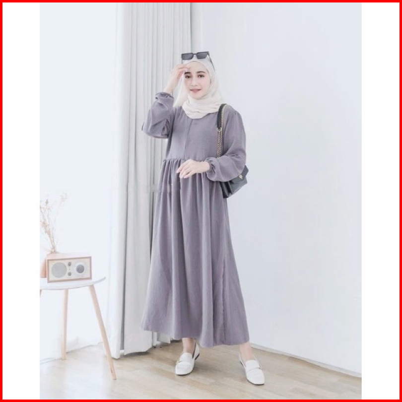 Bavina Midi Dress Pakaian Wanita Bahan Crinkle