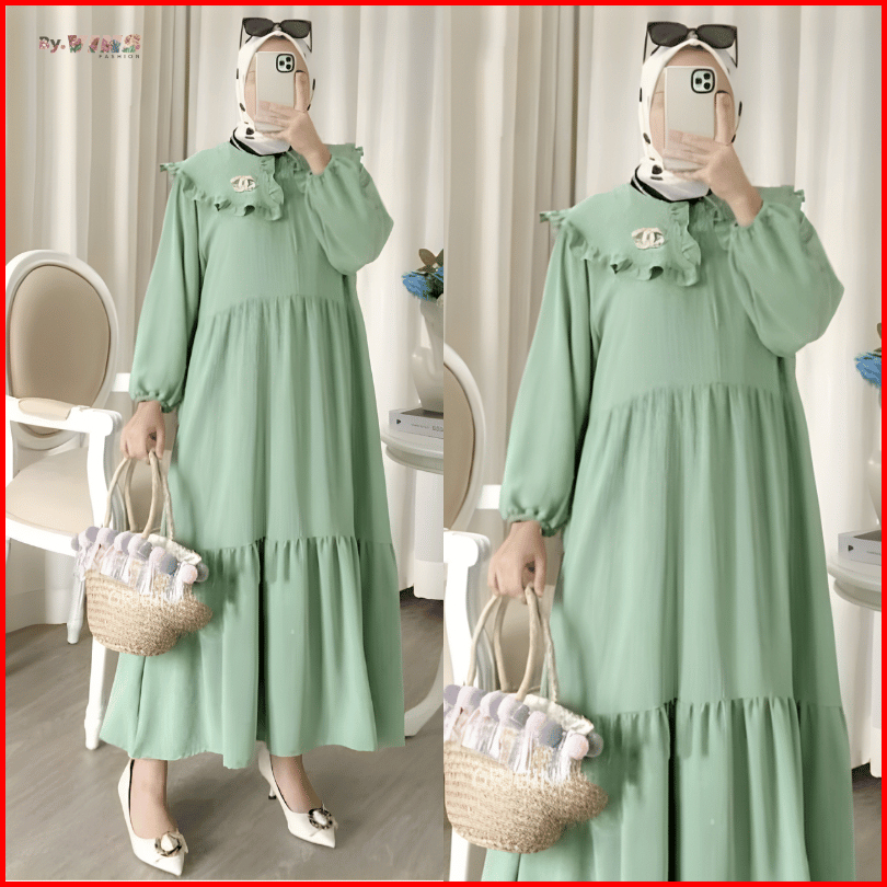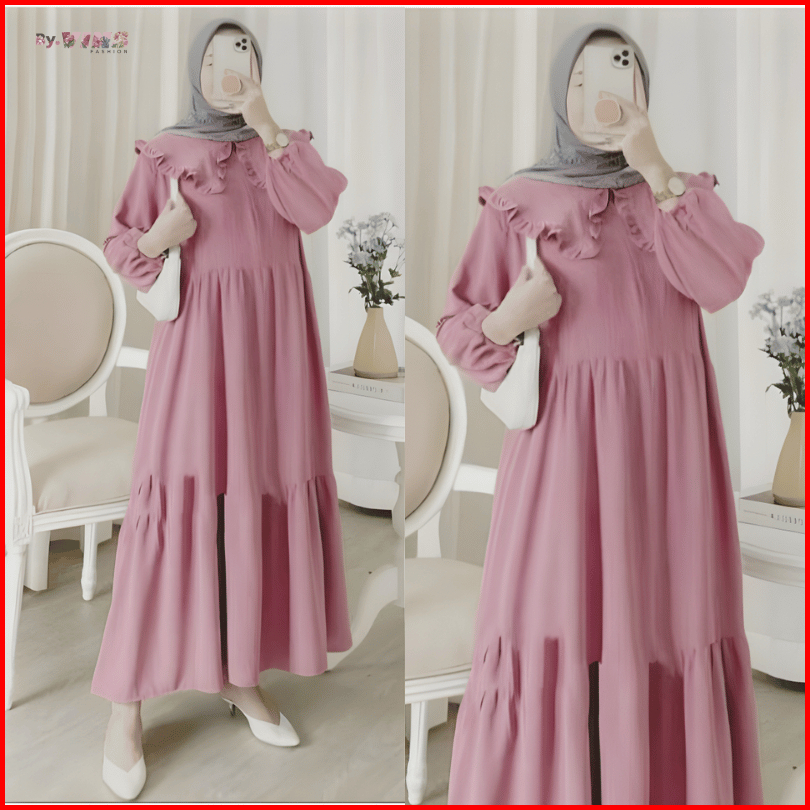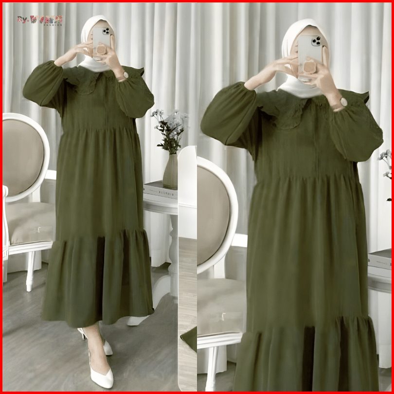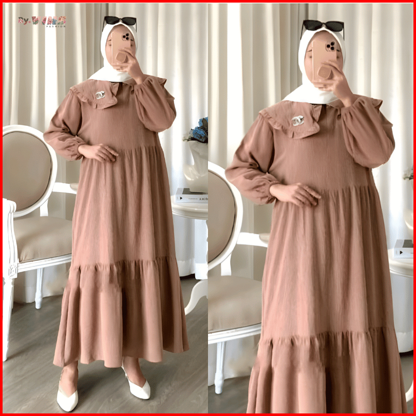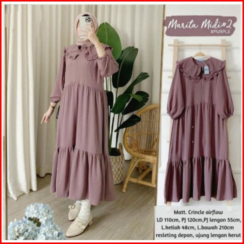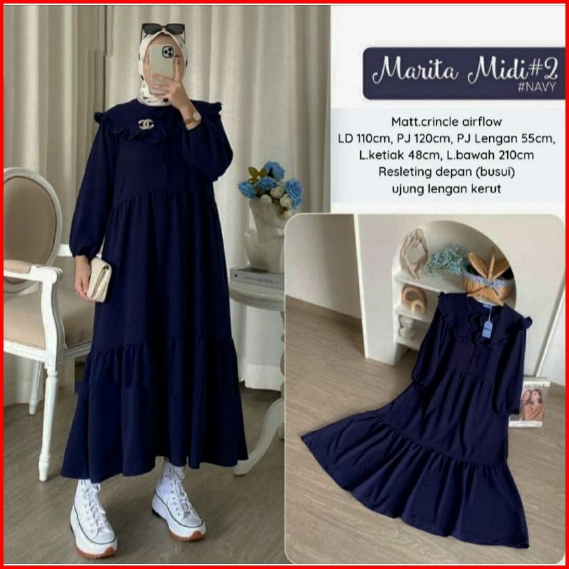 Marita Midi Dress Crinkle Airflow Fathia Dress Wanita Muslim Premium Import