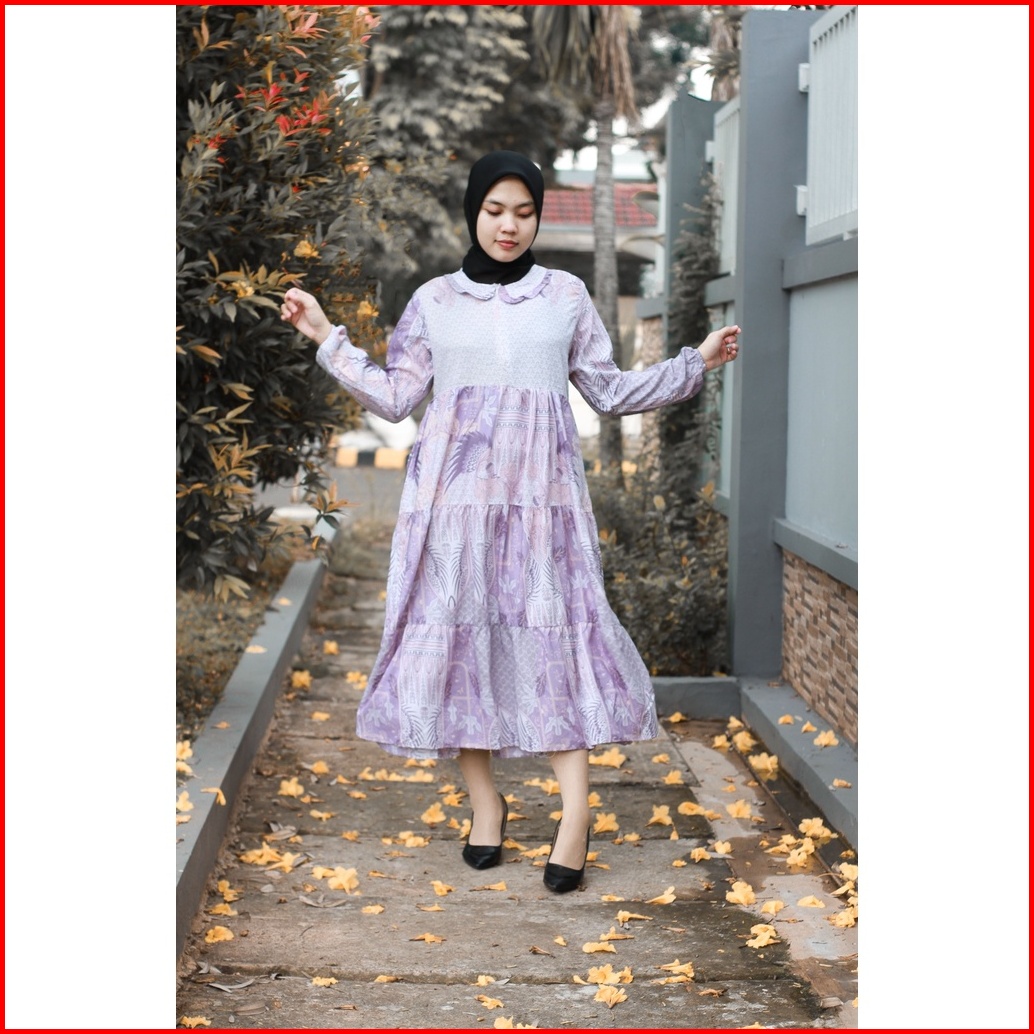 Izany Gamis Dress Wanita Dewasa Midi Dress Xxl Dress Jumbo Collar Rayon Busui Friendly