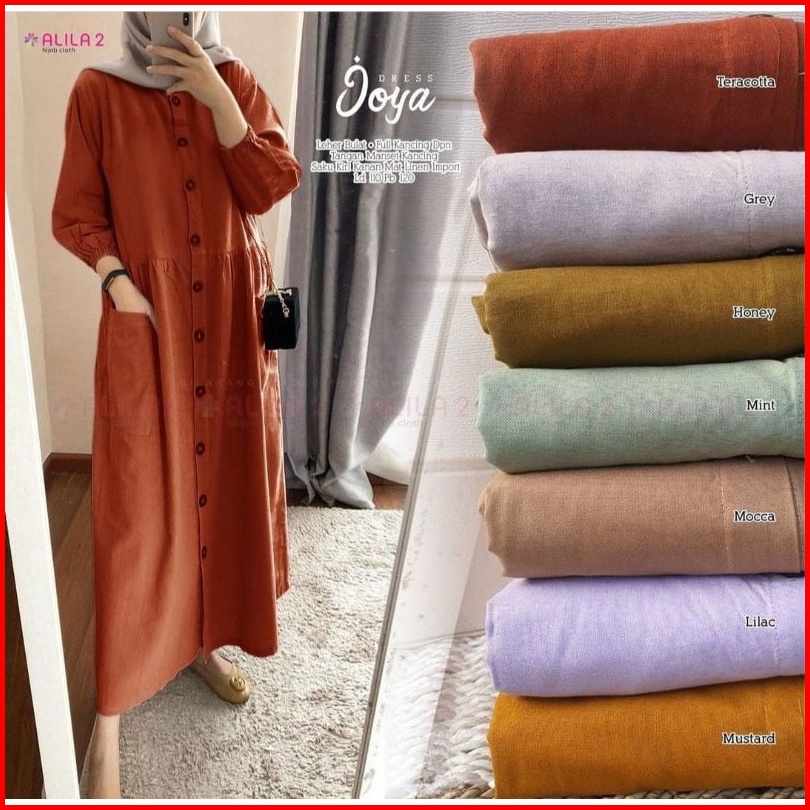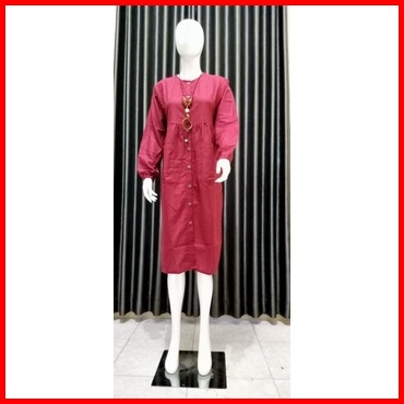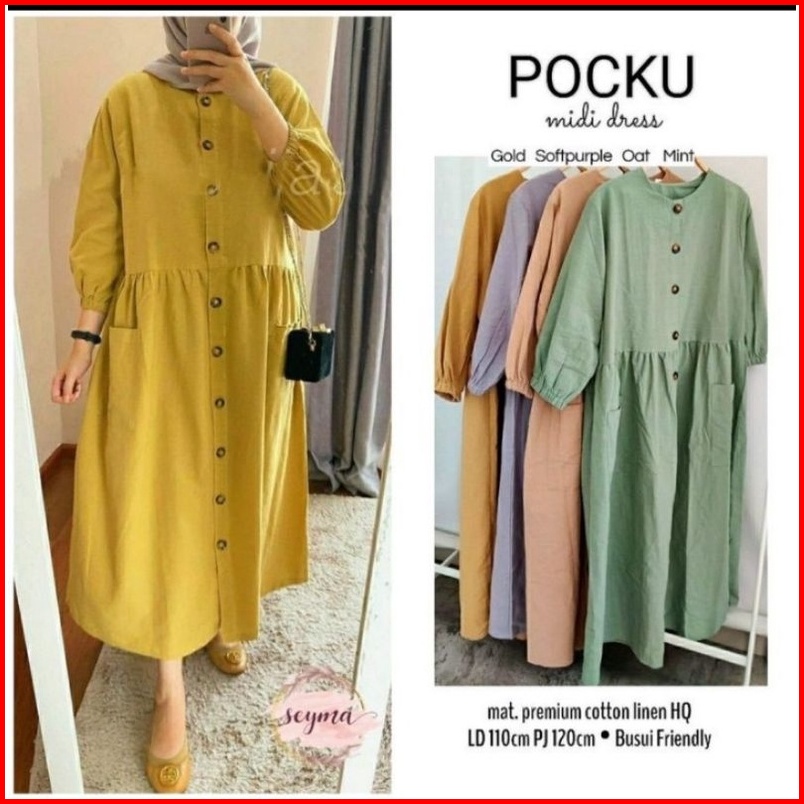 Midi Dress Katun Linen Rami Premium Pocku Midi Dress Katun Linen Rami