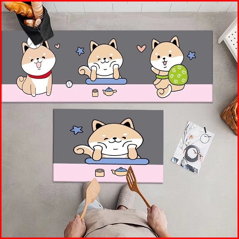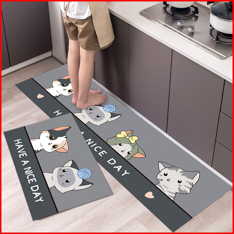 Hl0524 Keset Kaki Dapur Anti Slip Mat Keset Kaki Set 2 In 1 Motif Karakter Alas Lantai Kamar Mandi Serbaguna