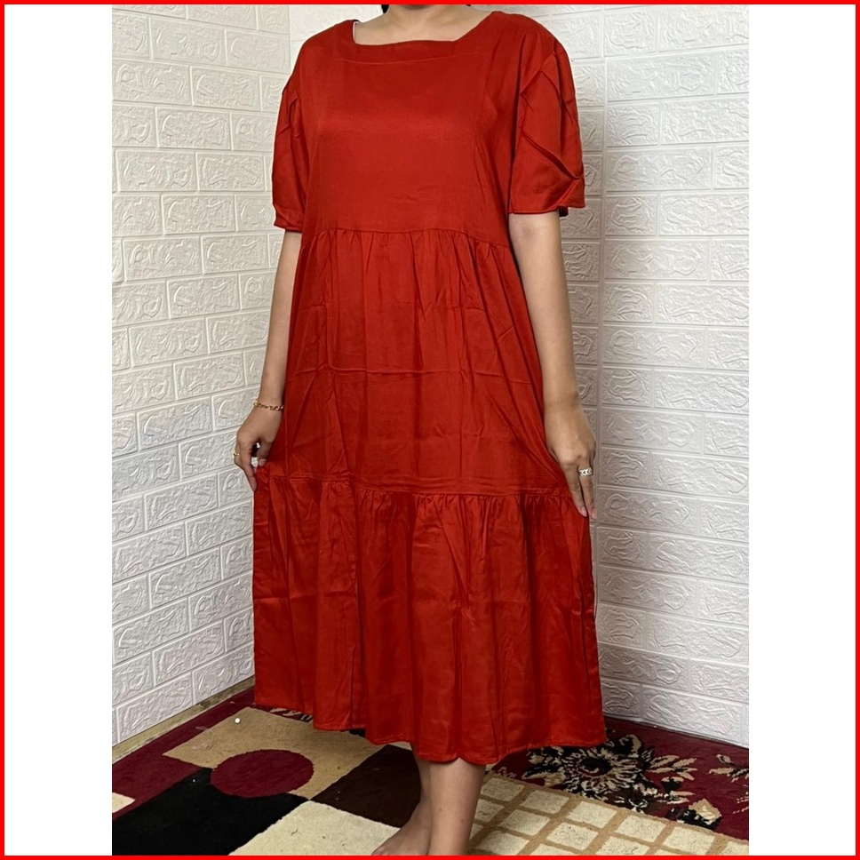 Midi Dress Varisha Polos Bahan Katun Rayon Daster Viral Midi Kekinian 2022