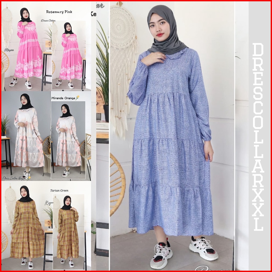Izany Dress Wanita Xxl Jumbo Midi Dress Collar Rayon