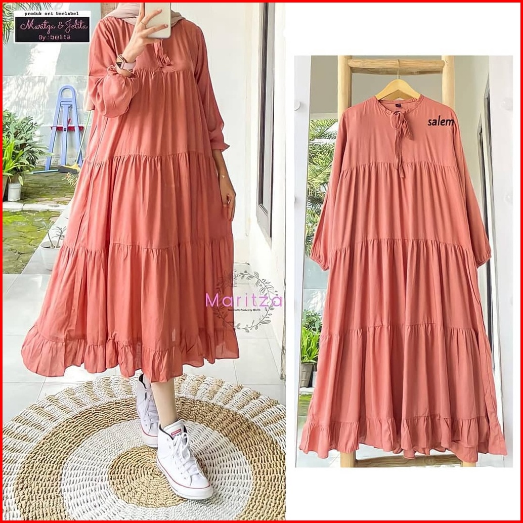 Promo Rachel Midi Dress Long Tunik Wanita Terbaru Gamis Polos Murah Ootd Muslim Kekinian