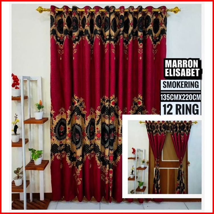 Gorden Murah Smokring Besar 12 Lubang Motif Batik Mewah Merah Marun Elisabeth