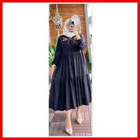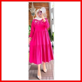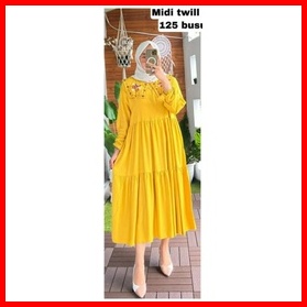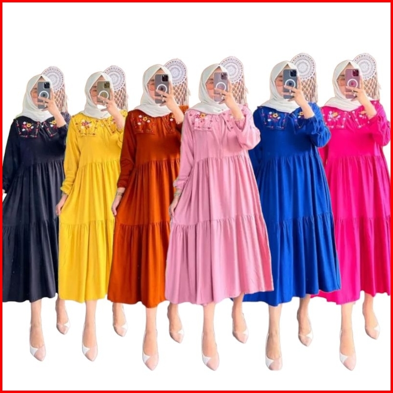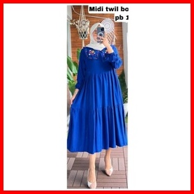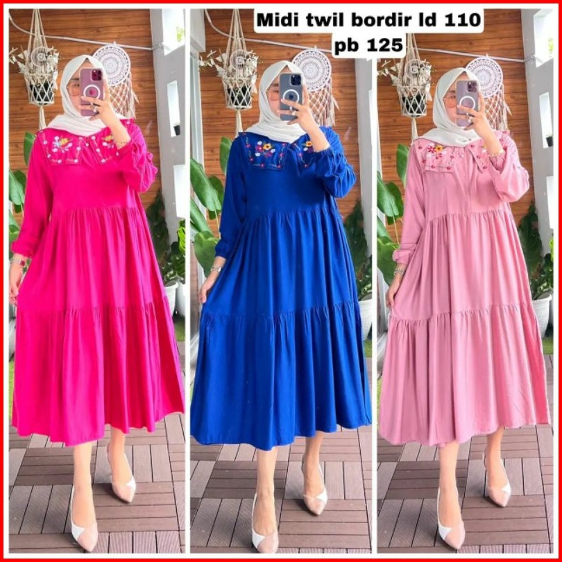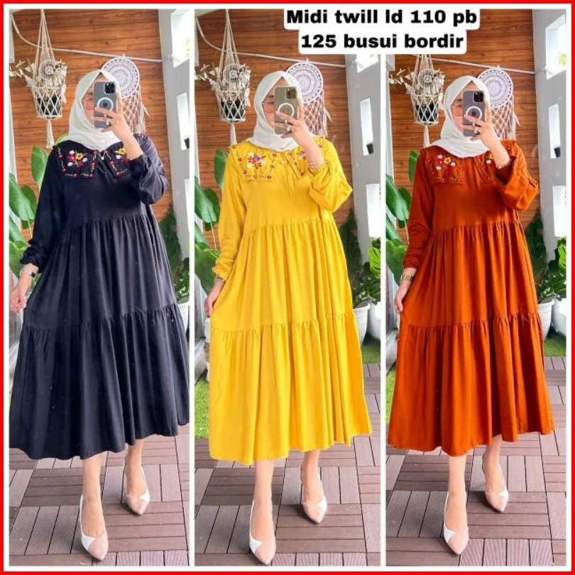 Wm Midi Dress Rayon Twill Premium Midi Dress Kerah Bordir Terbaru Tunik Midi Terlaris Midi Dress Kondangan Pakaian Pesta