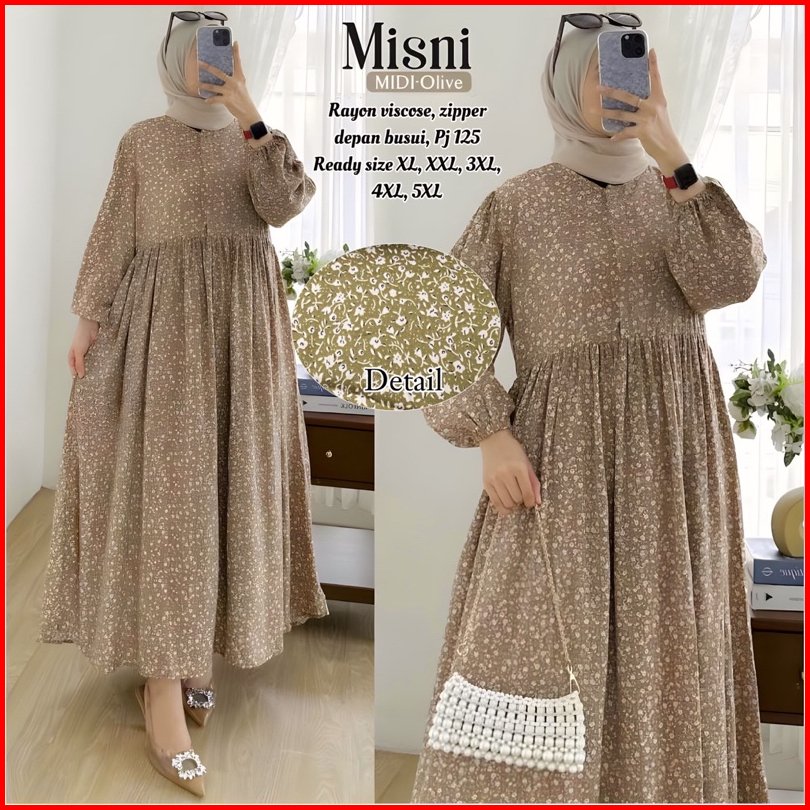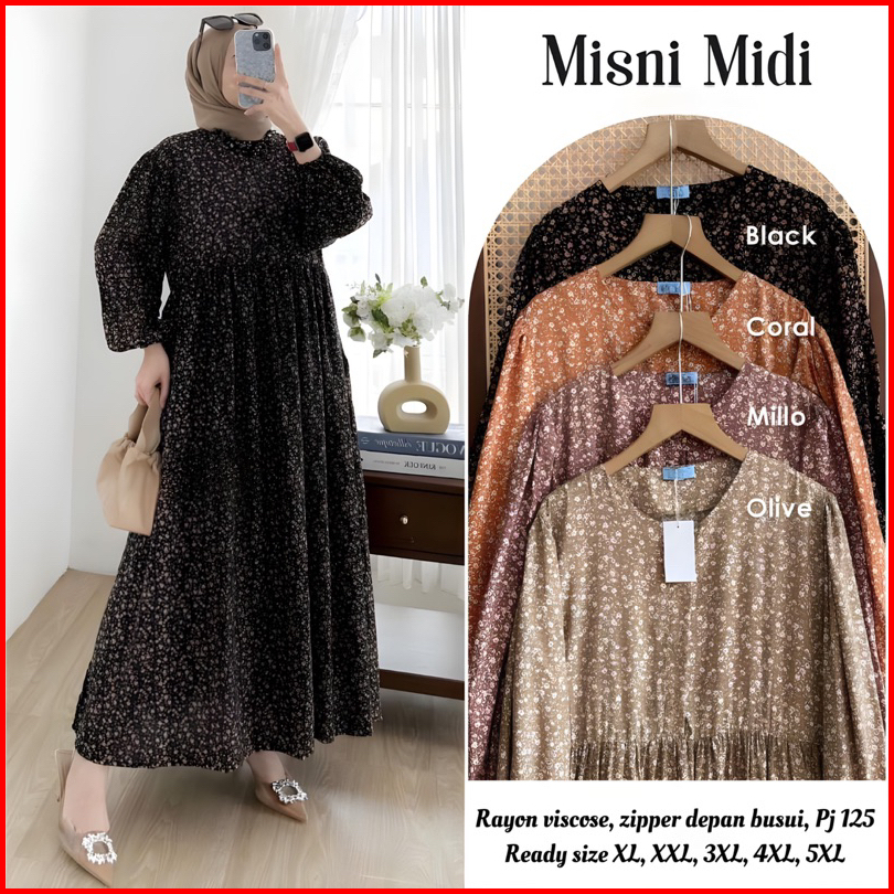 Midi Dress Roseline Misni Wanita Jumbo Rayon Viscose Busui Adem Dan Tidak Nerawang Size Xl Xxl 3xl 4xl 5xl By Nata Klamb