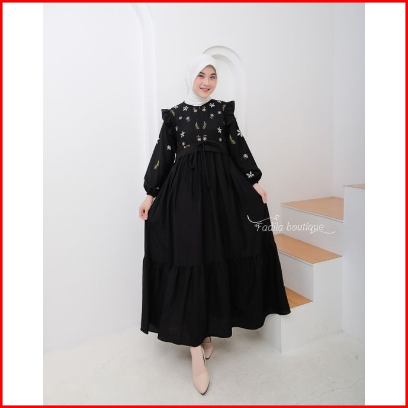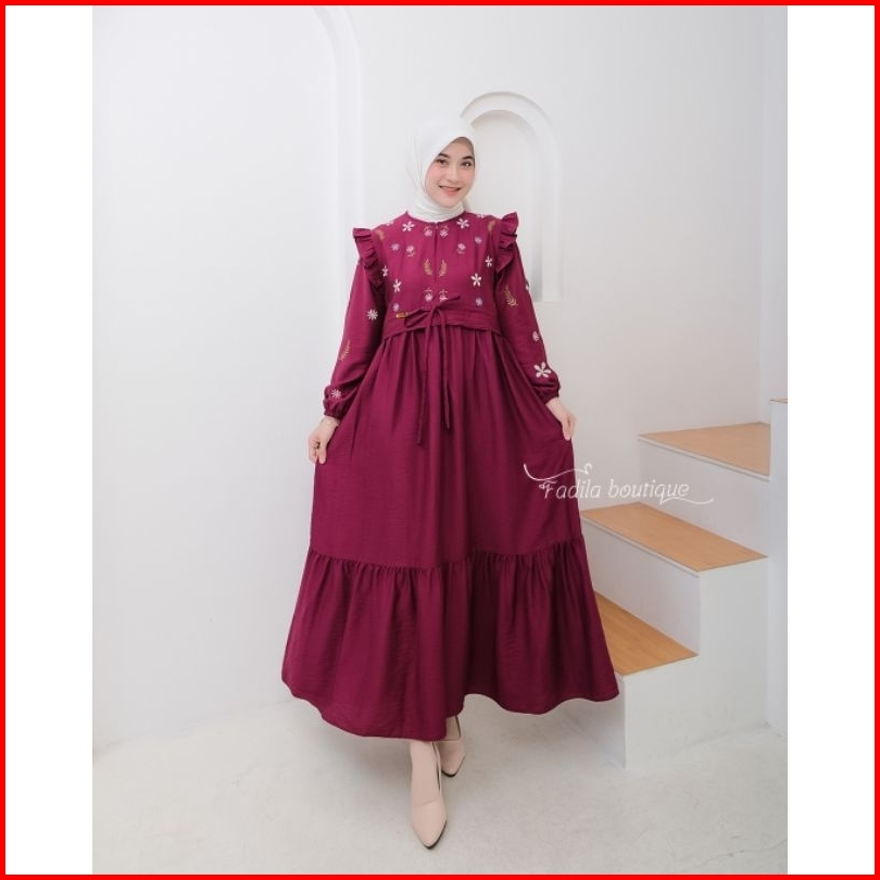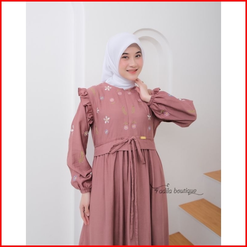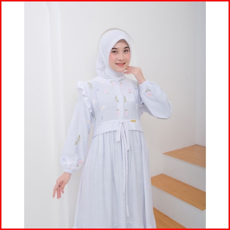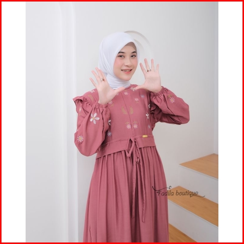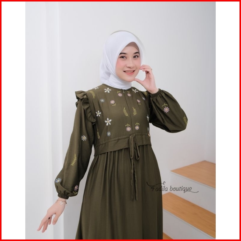 Adisty Midi Dres Bordir Dres Polo Linen Bordir