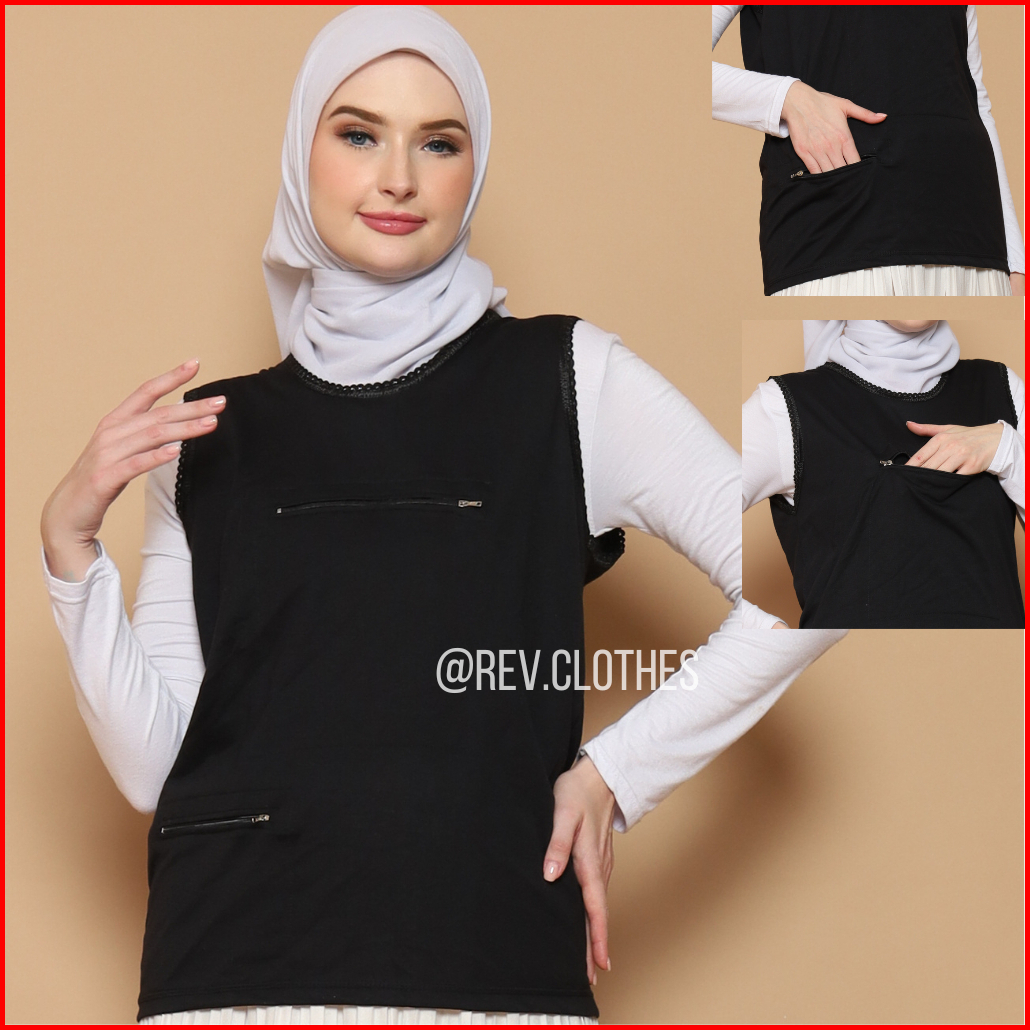 Singlet Haji Umroh Wanita Hitam Kantong 2 Sing Umroh Wanita