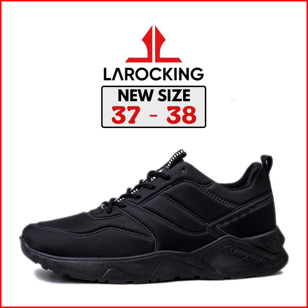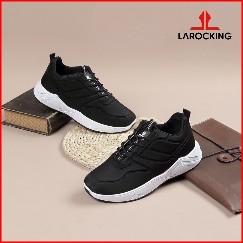 Larocking - Dexter Hitam Putih Polos Sepatu Sneakers Running Gym Shoes