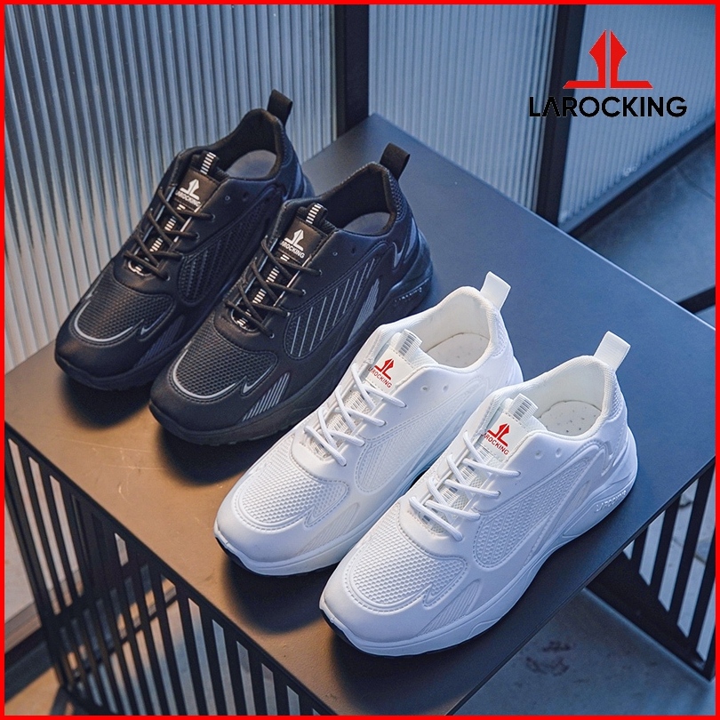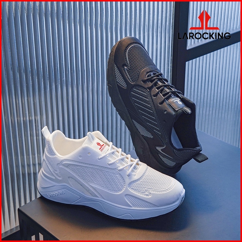 Larocking - Vetro Hitam Putih Abu Polos Sepatu Sneakers Running Gym Shoes