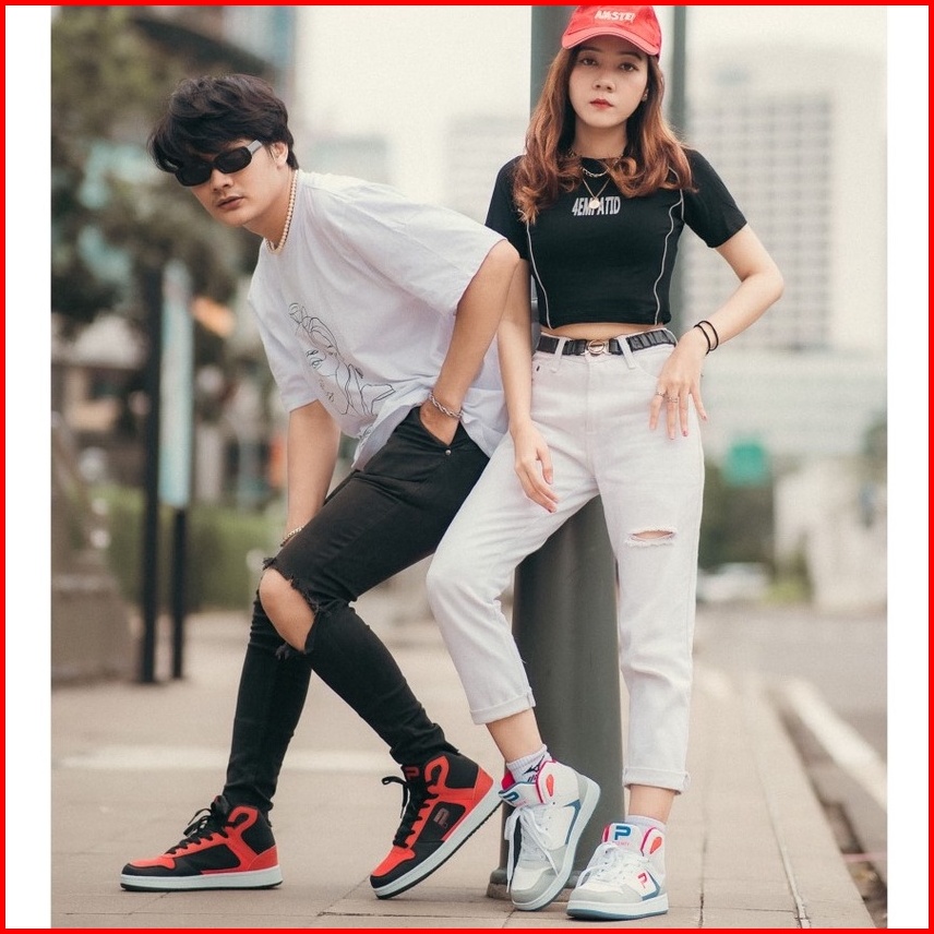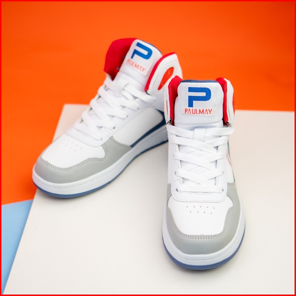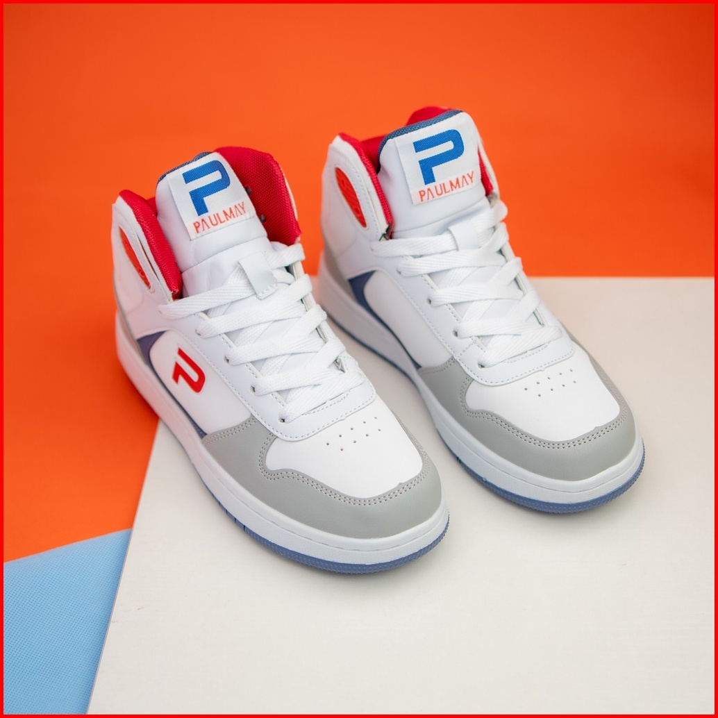 Paulmay - Sepatu Sneakers Pria Lisbon High - Grey Red