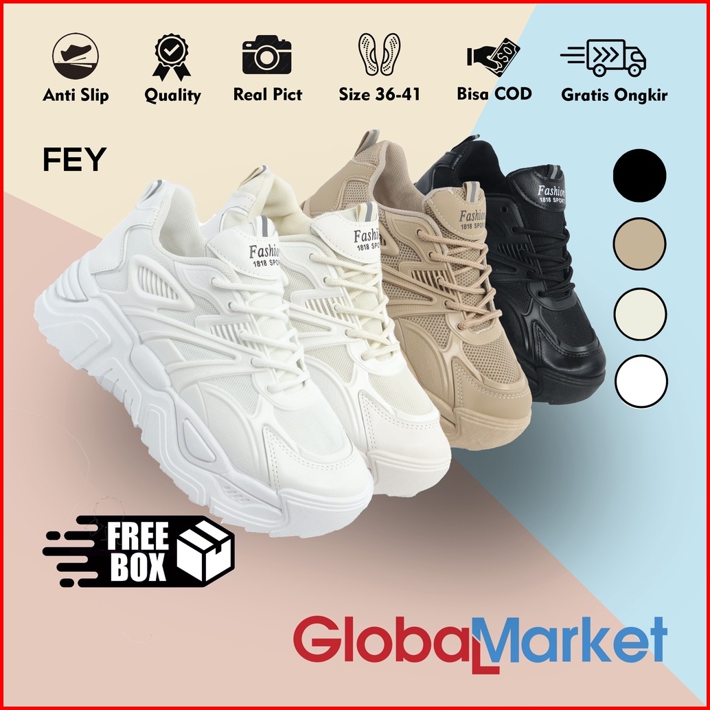 Globalmarket Free Kotak Box Fey Sepatu Olahraga Wanita Putih Sneakers Import Zumba Fitness 1291